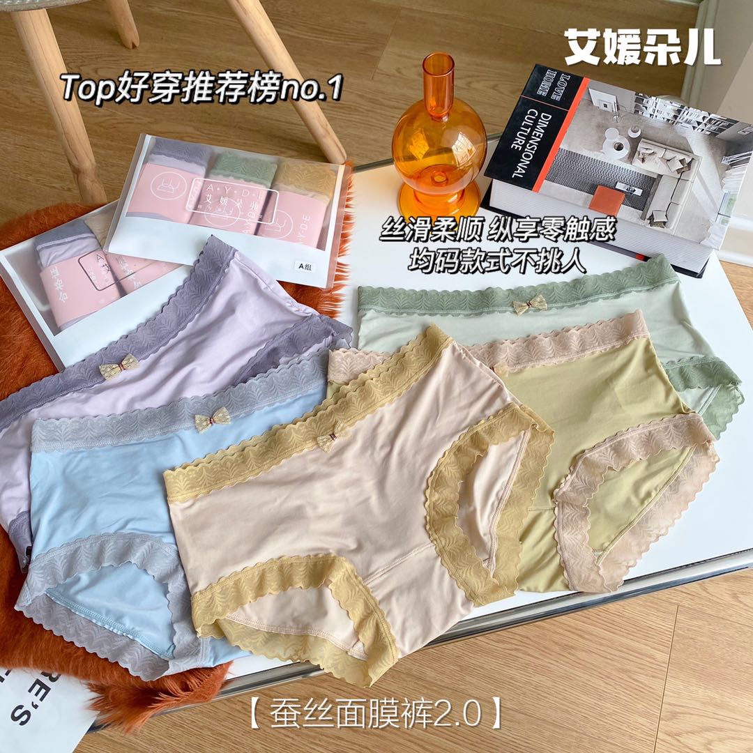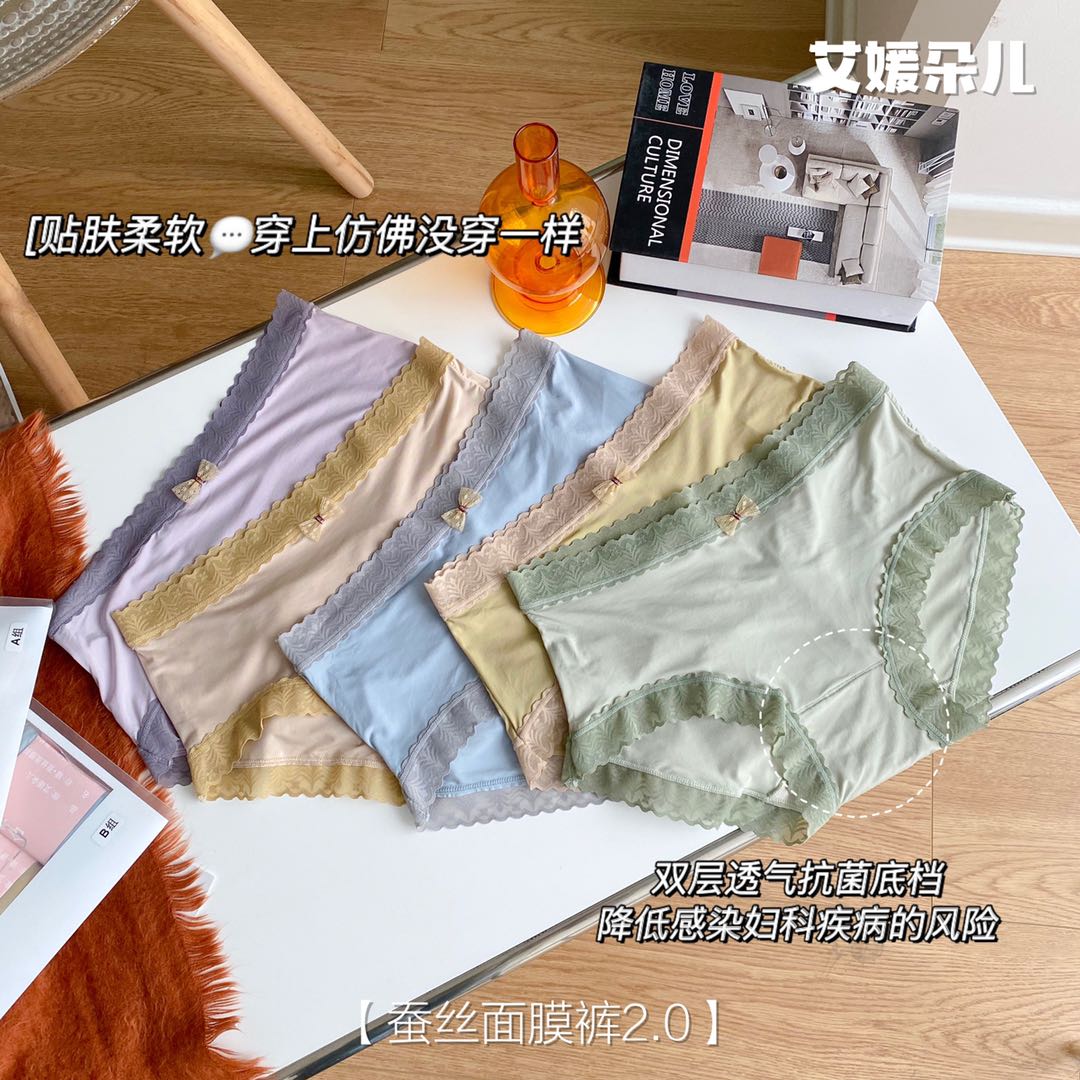 蚕丝润肤、质感丝滑、透气轻薄、吸湿速干。360°任意自由拉伸,不勒裆~,添加了蚕丝蛋白哦~比普通内裤更柔滑!更透气!