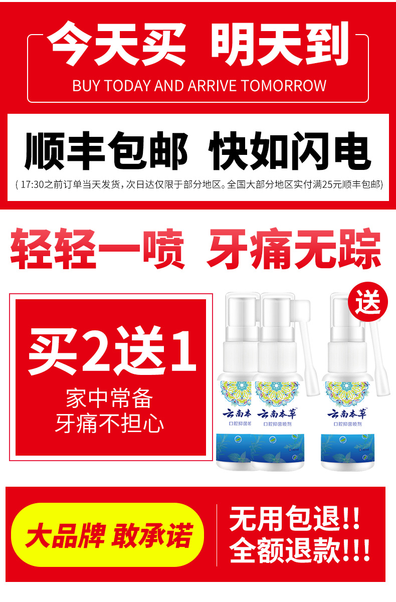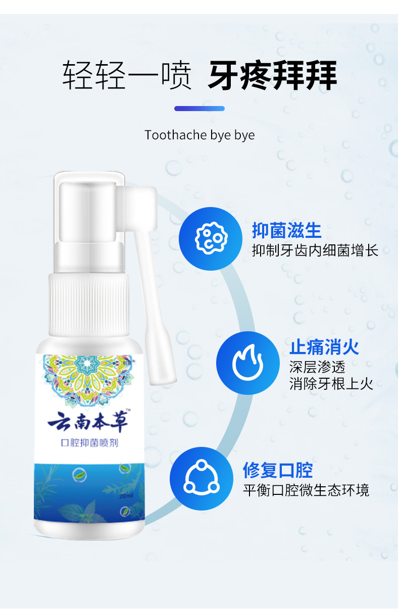 【买2送1】牙疼不是病,疼起来真要命!!囤云南本草旗下,艾力舒消炎喷雾剂!含苦参、丁香、野菊、薄荷提取物,深层渗透,抑制牙齿内细菌生长!上火肿痛、口腔溃疡,蛀牙龋齿都能用!