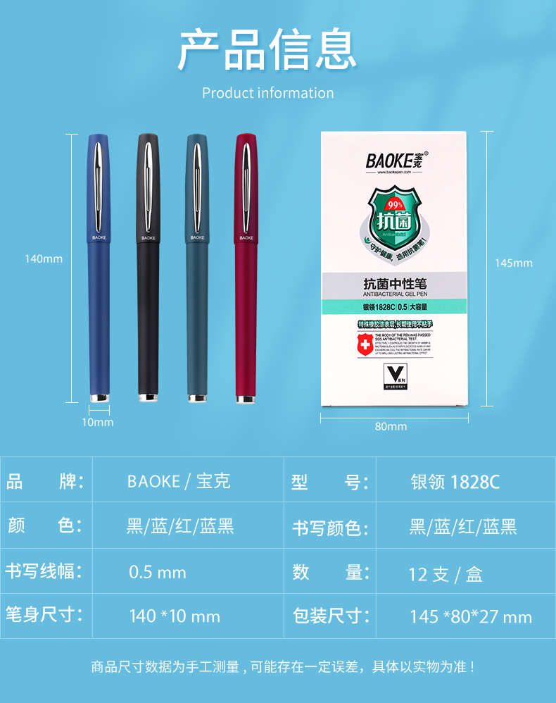超值宝克中性笔5支,0.5mm钛钢笔头,子弹头水笔,黑色学生文具专用,碳素黑笔芯考试笔,专用速干全针管式大容量,办公签字笔!