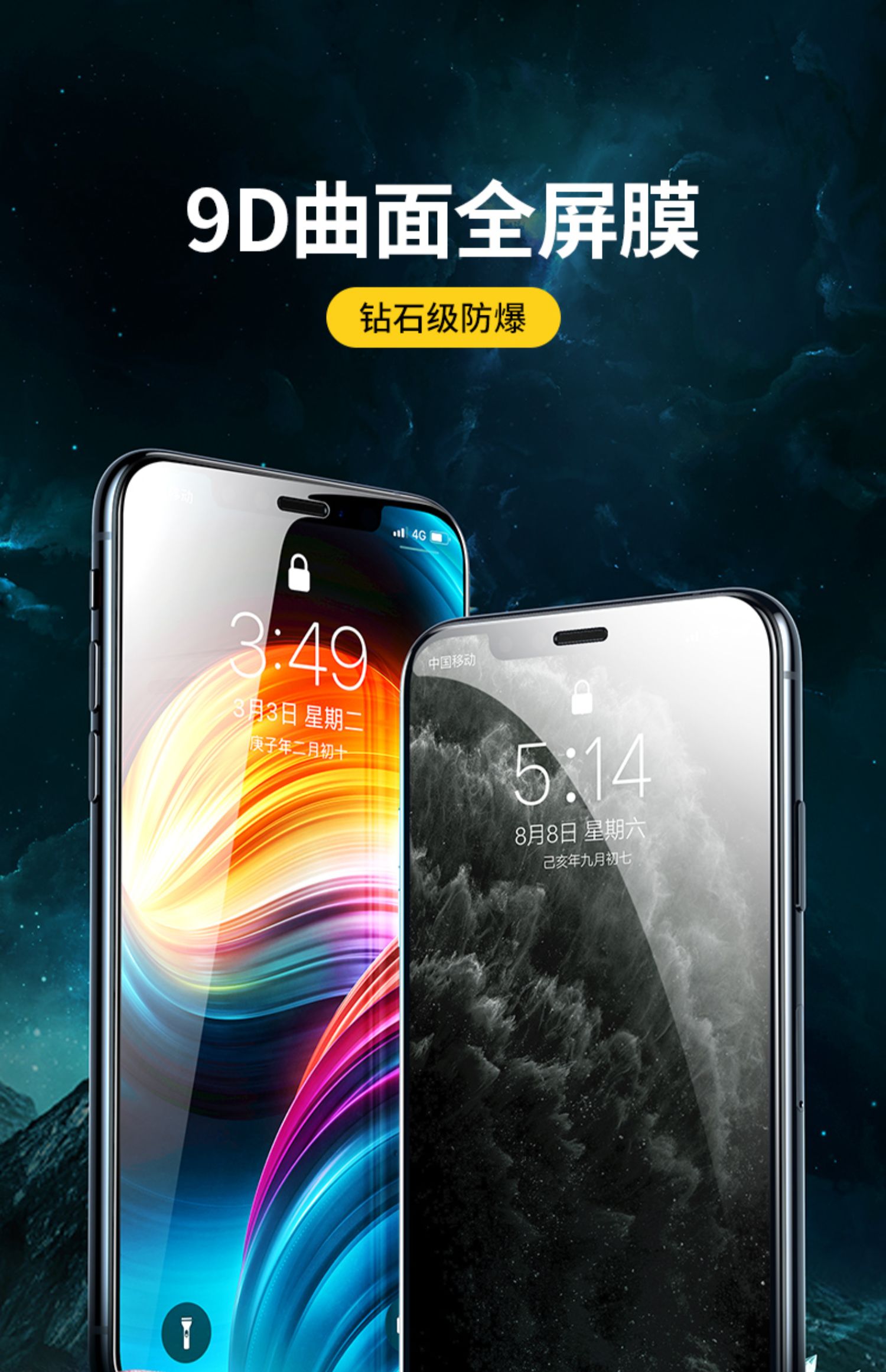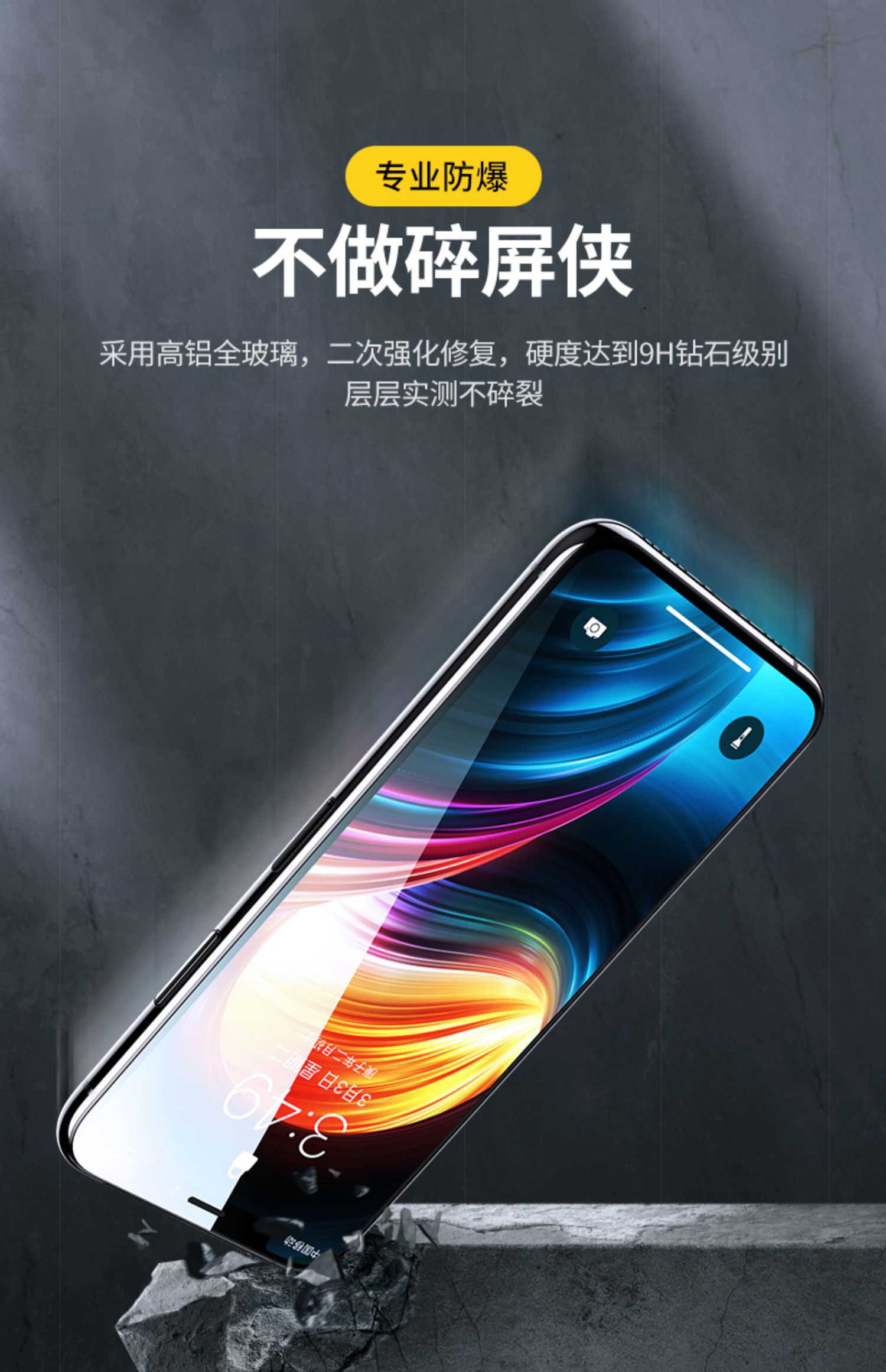 绿联iPhone11钢化膜X适用于苹果13手机12,贴膜XsMax全屏覆盖曲面11ProMax磨砂XR防偷窥8P防摔高清全包膜边7P,曲面全屏,砖石防刮,强抗指纹。