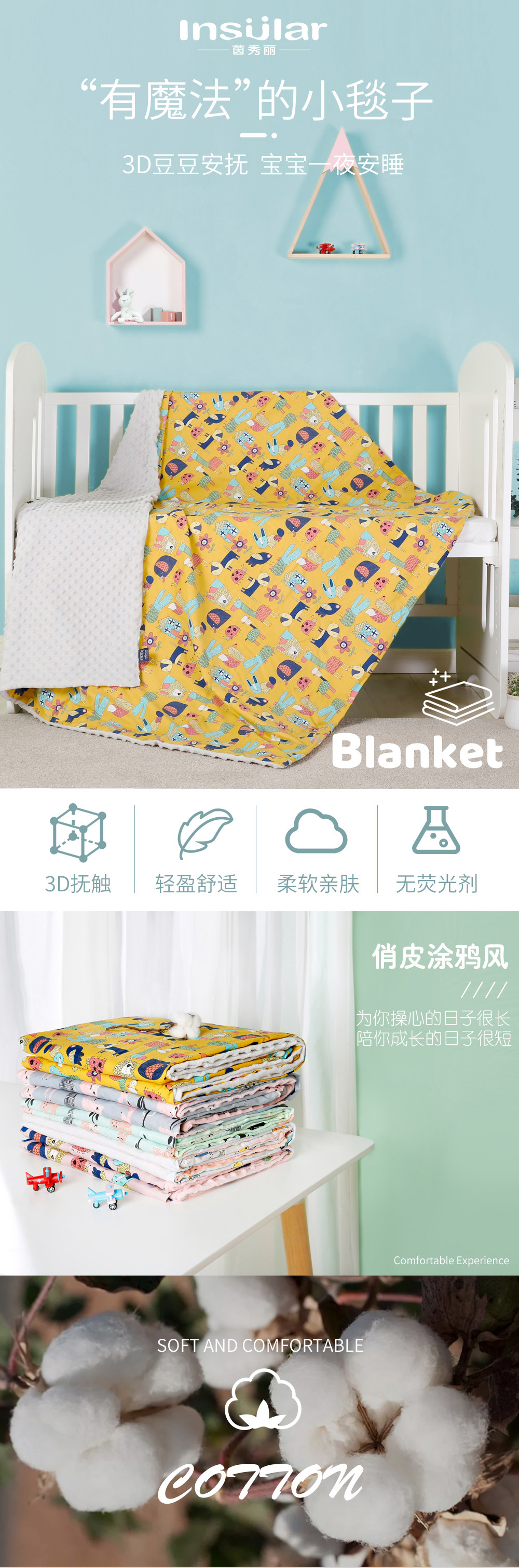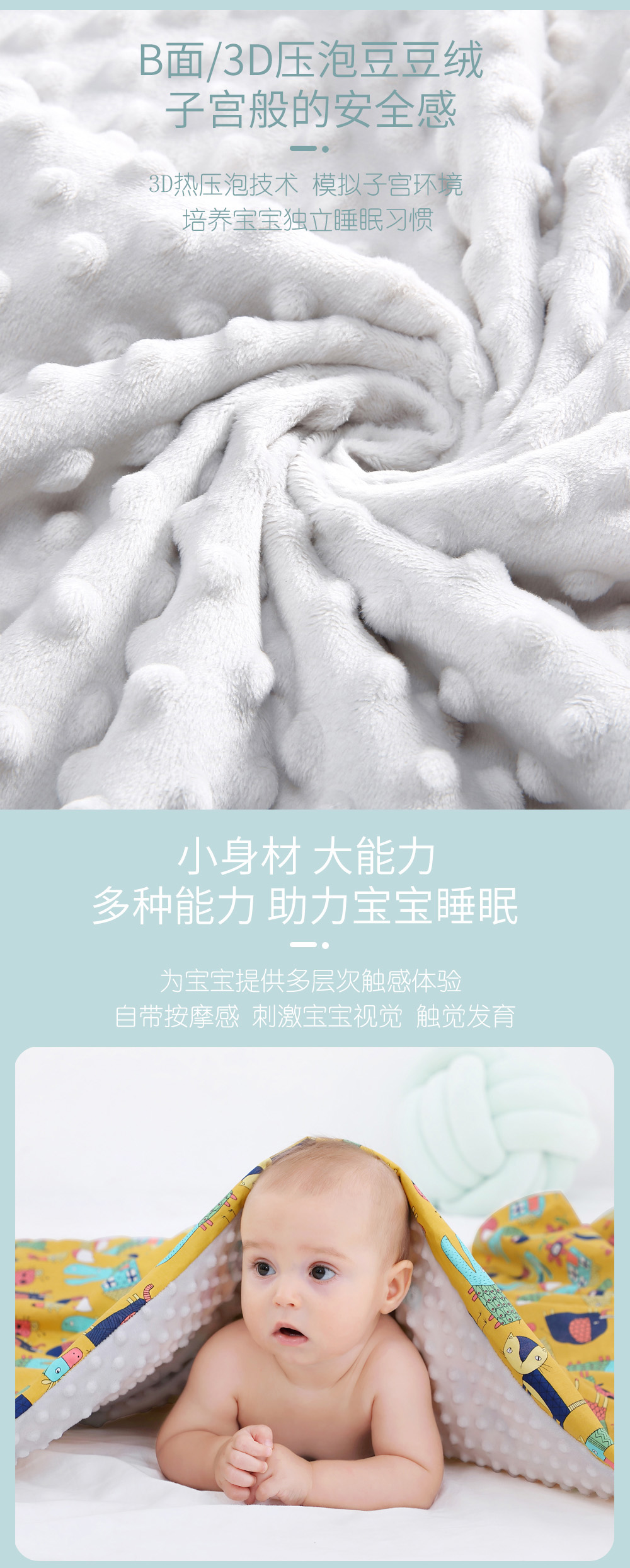 神奇豆豆毯,双面可用,安抚宝宝睡眠。顺滑触感,给宝宝妈妈般抚摸的感觉,A类品质,3D按摩豆,无荧光剂,不掉毛、不掉色,让宝宝安心啃咬。9年老店,值得信赖【赠运费险】