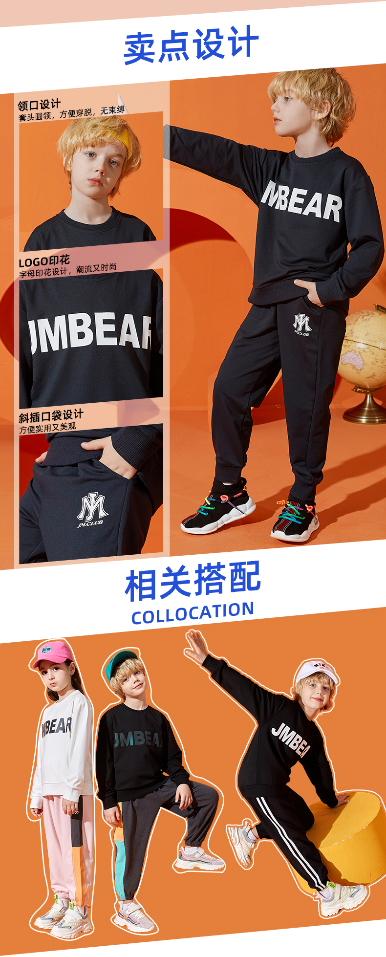 杰米熊男童休闲卫衣套装运动两件套