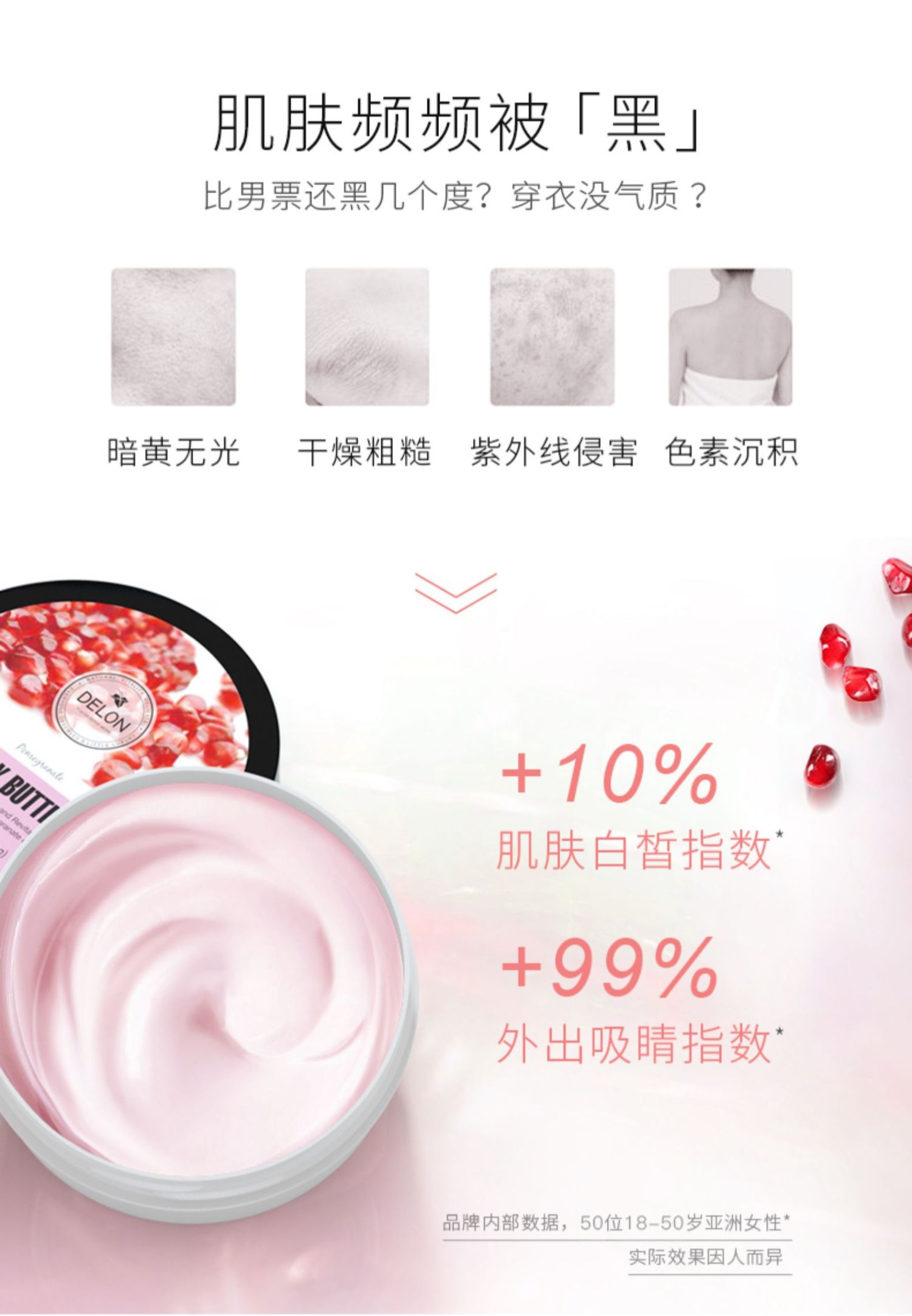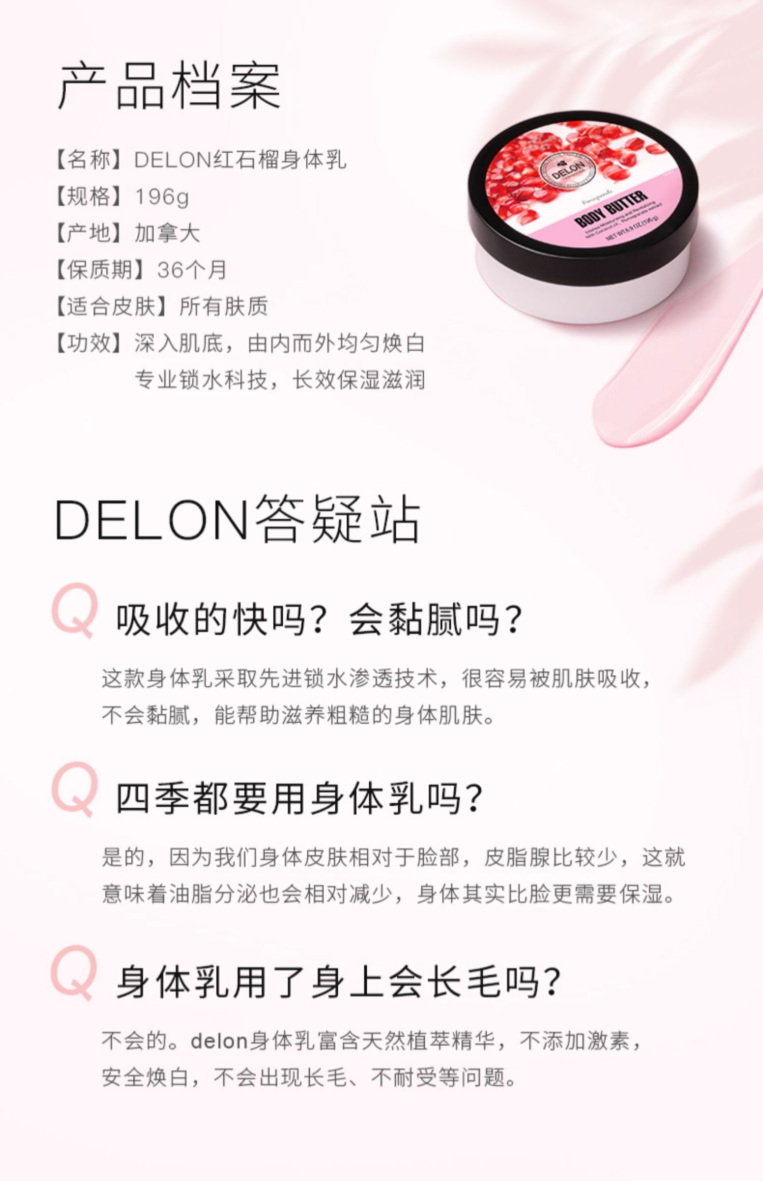 【加拿大delon身体乳】天然植物果萃,能减少暗沉生成,重现净白光彩,深入水润保湿,肌肤水感柔润,软化老废角质,肌肤更显通透!【退货运费险】