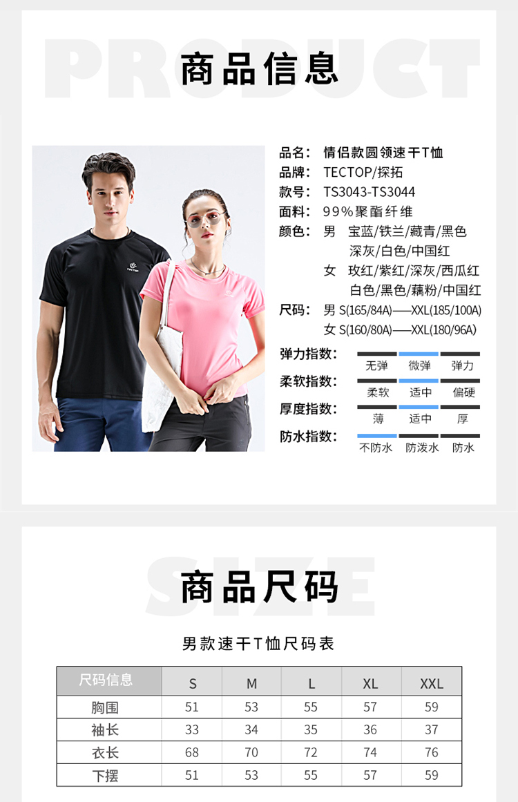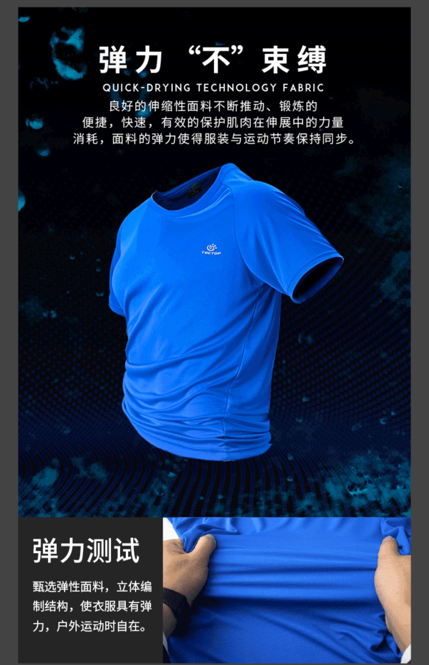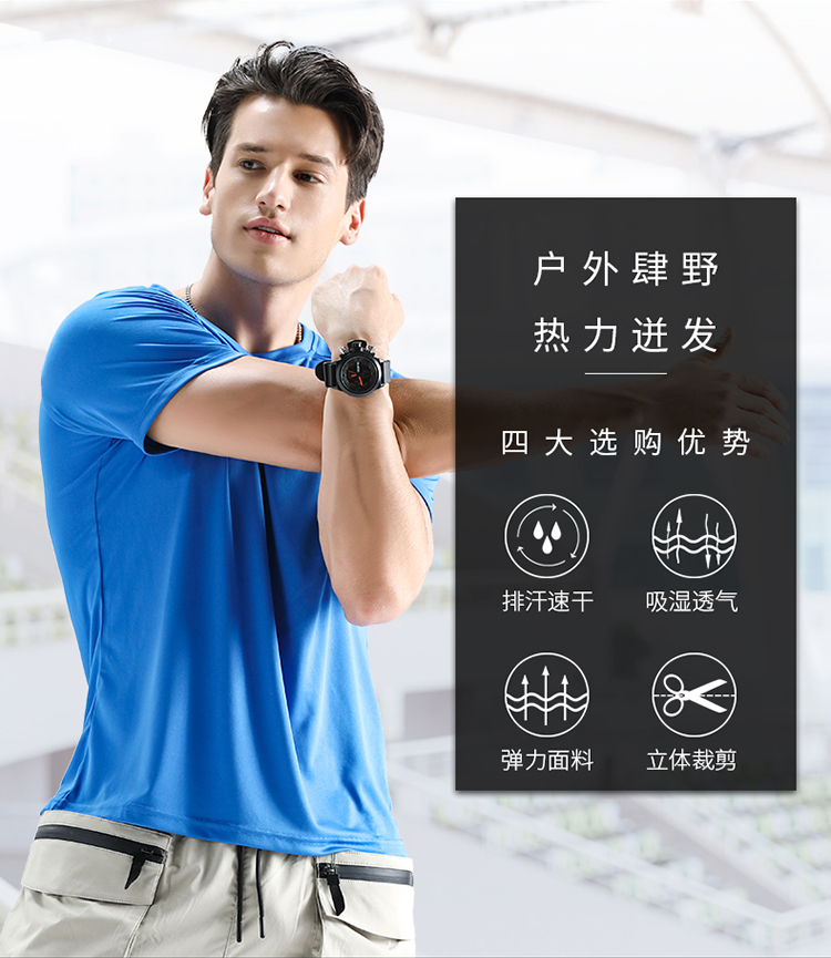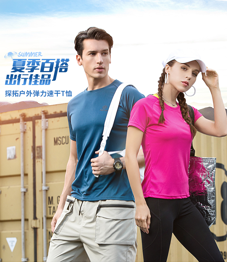 探拓户外弹力速干T恤,排汗速干,吸湿透气,弹力面料,立体裁剪,亲肤不刺激,抗皱性强,弹力好,自然环保,安心舒适,夏季百搭,出行佳品。