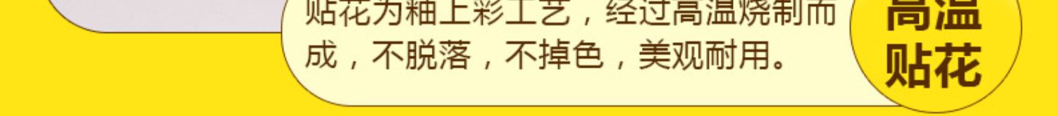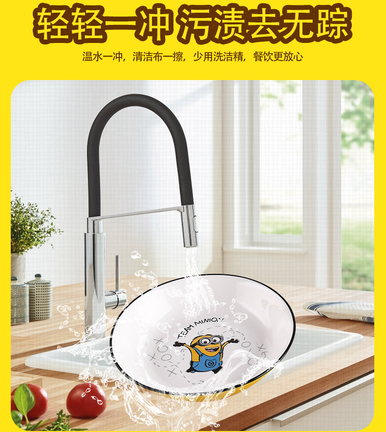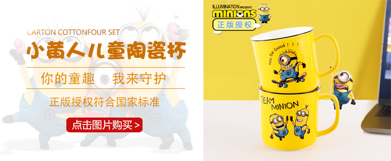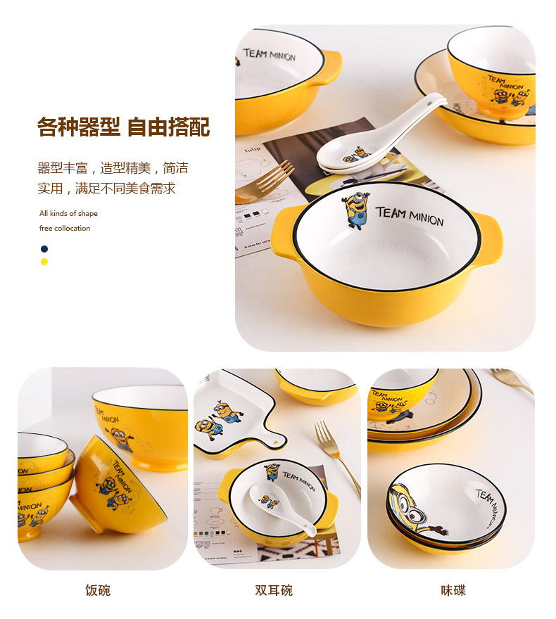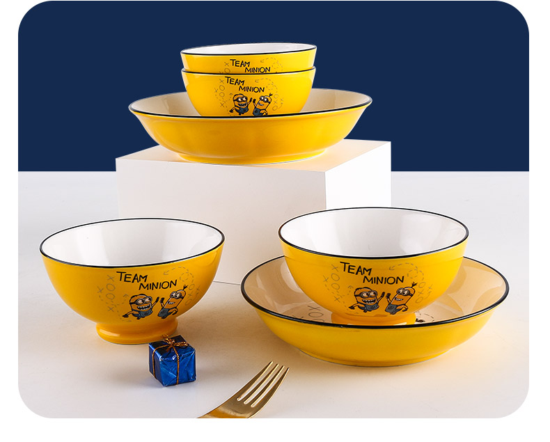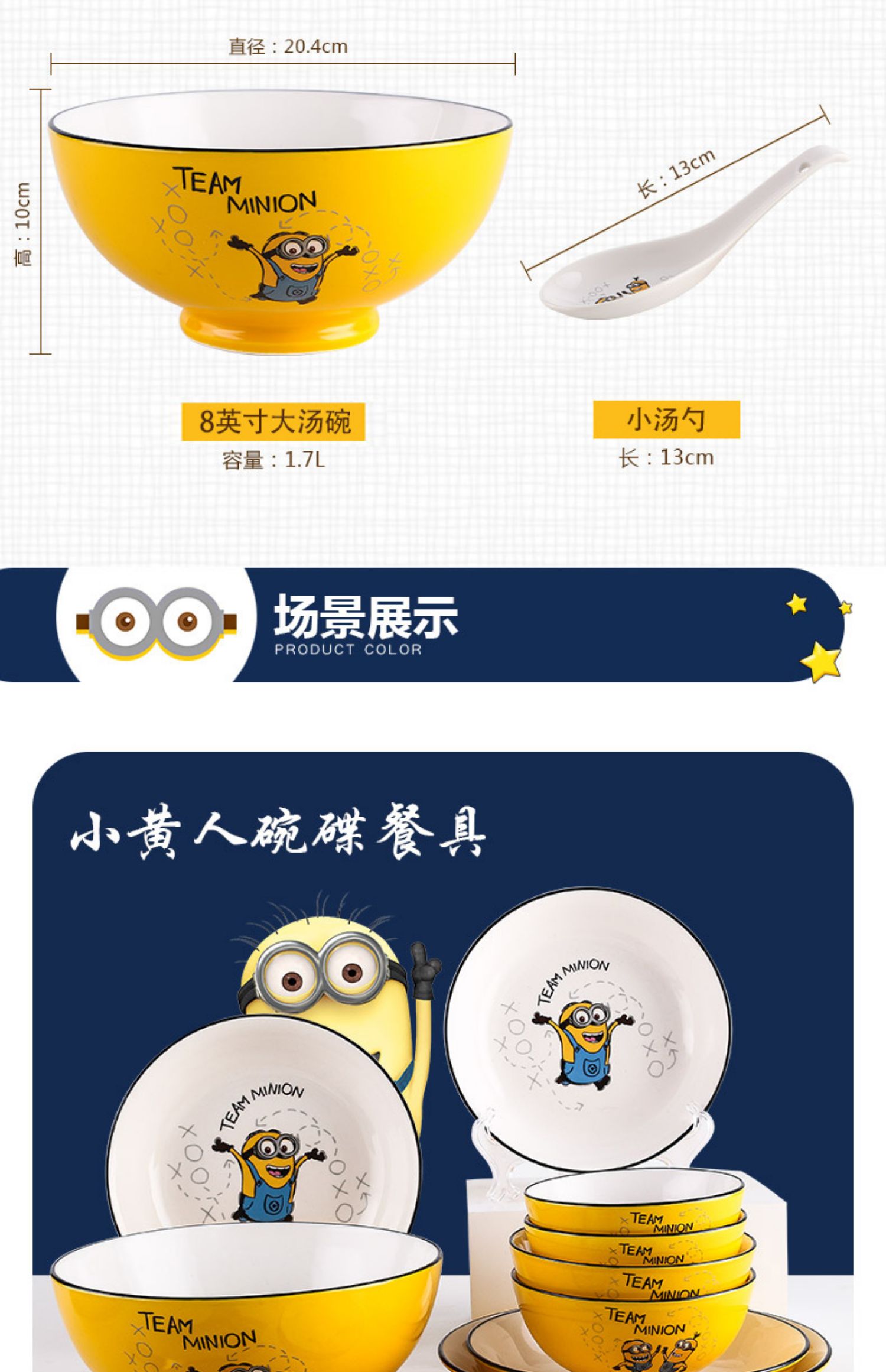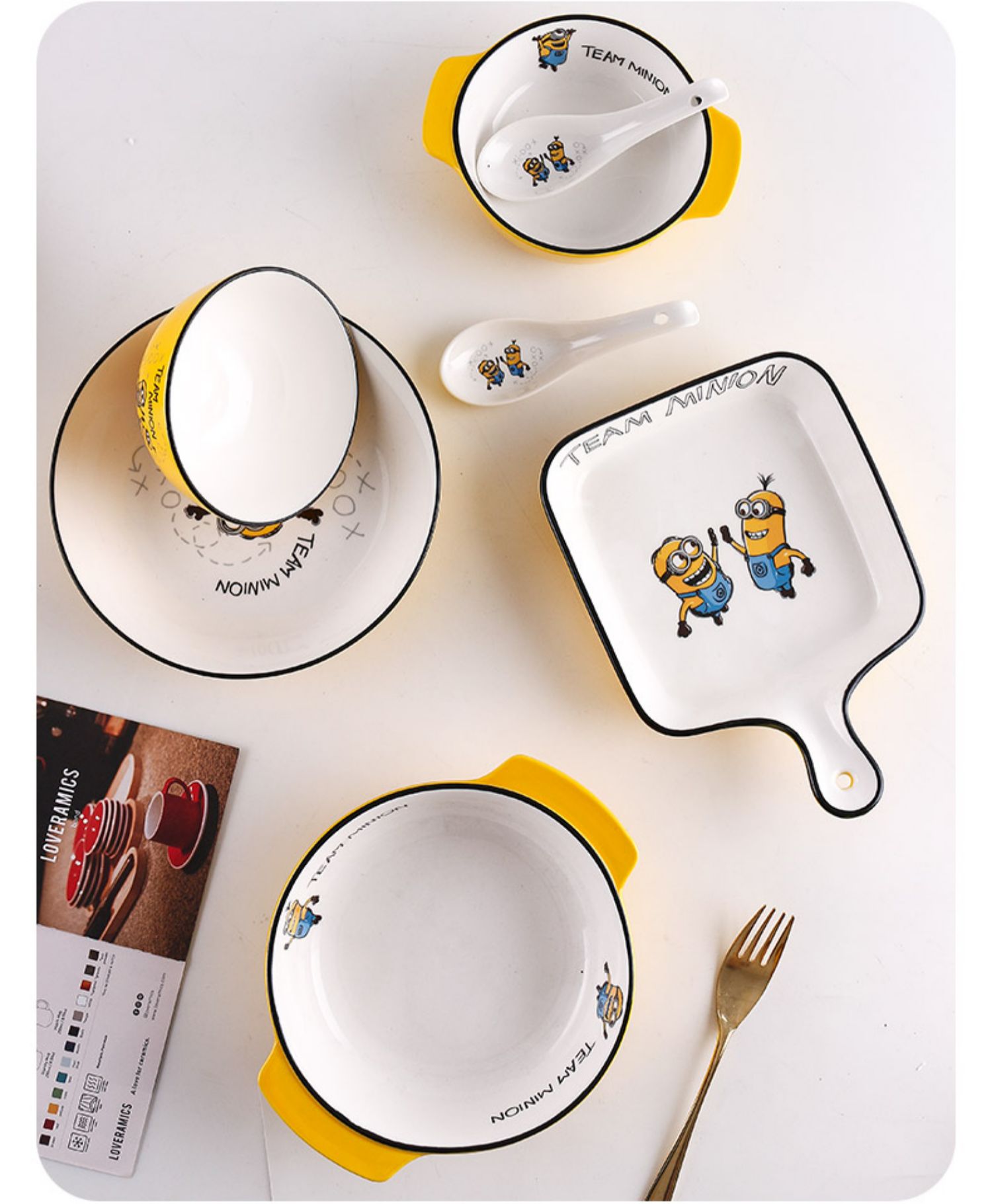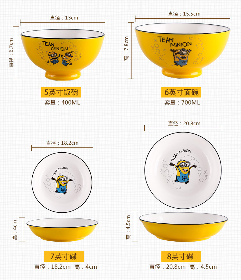 小黄人陶瓷儿童餐具,质地坚硬,无铅无镉,安全食品级材质,轻盈薄透,质如美玉,精致花纹。经过高温烧制,哟花而清晰不易掉落。隔热防烫,呵护你的双手哟!!