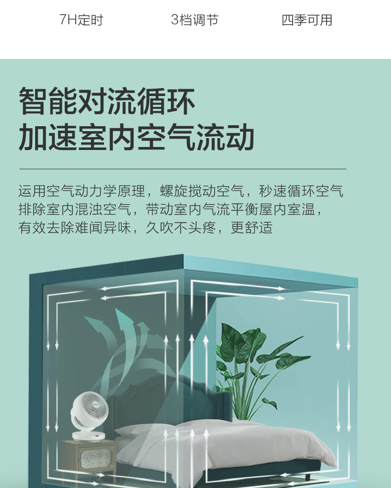 涡轮对流,循环空气,全屋循环,让家深呼吸的感觉,自然风感,低音电机,三档调风,空气循环,平衡室温,提高空调效率,降低耗能【赠运费险】