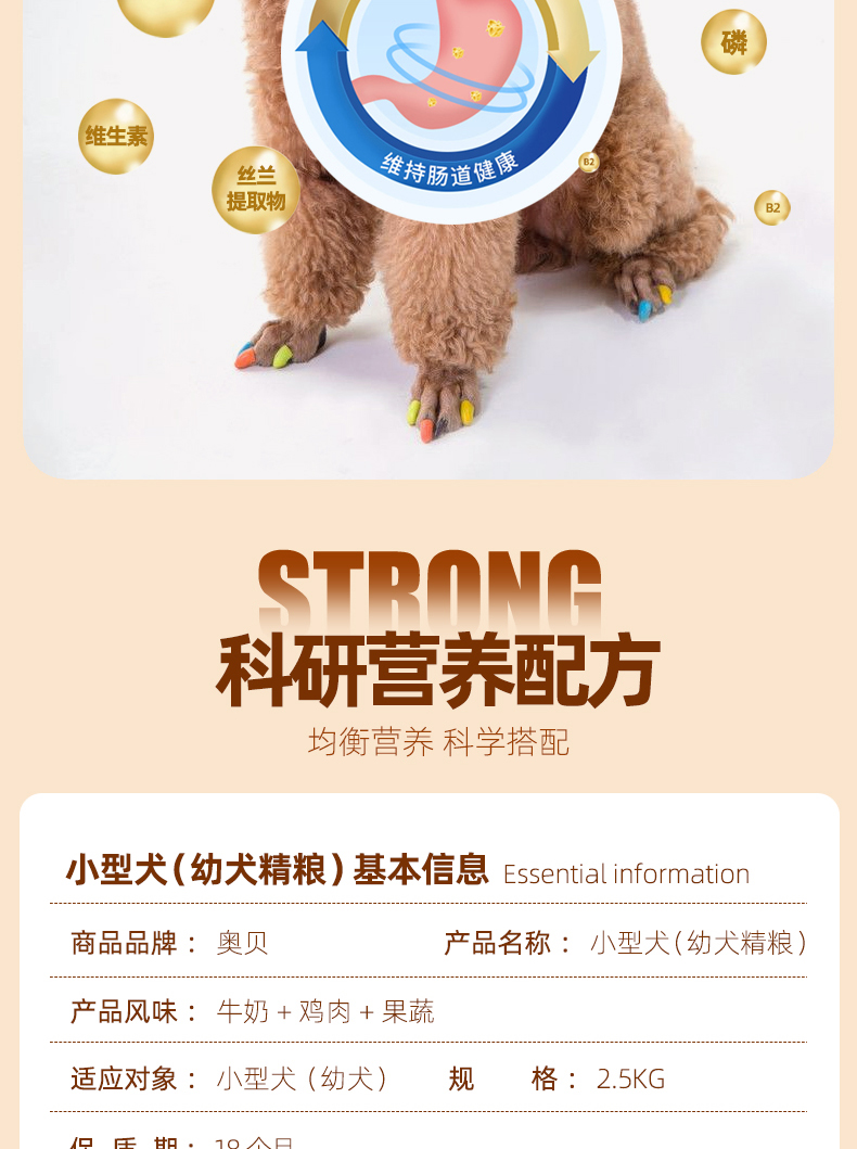 【奥贝】宠物食品15年品牌,鲜肉原味呵护肠胃,促进吸收。天然健康原料,满足狗狗各阶段需求。多种矿物质和18种氨基酸,健脑益智,美毛靓肤,减少脱毛。