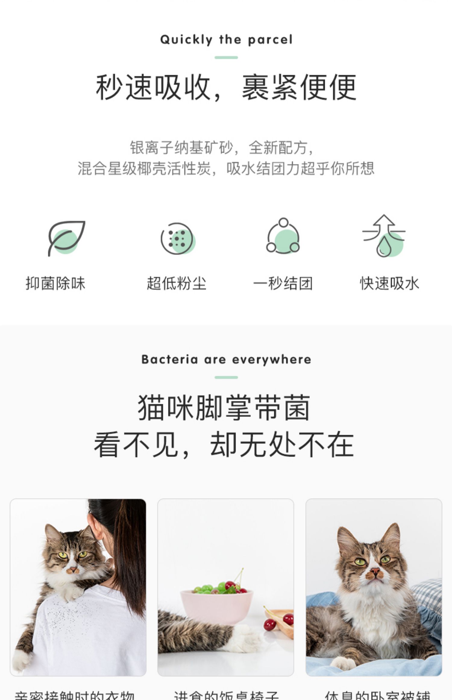 【拍2件50.6元】活性银离子抗菌钠基矿猫砂,椰壳活性炭锁味除臭,几近无尘,闪电成团,脚感舒适不沾掌~。宠物用品