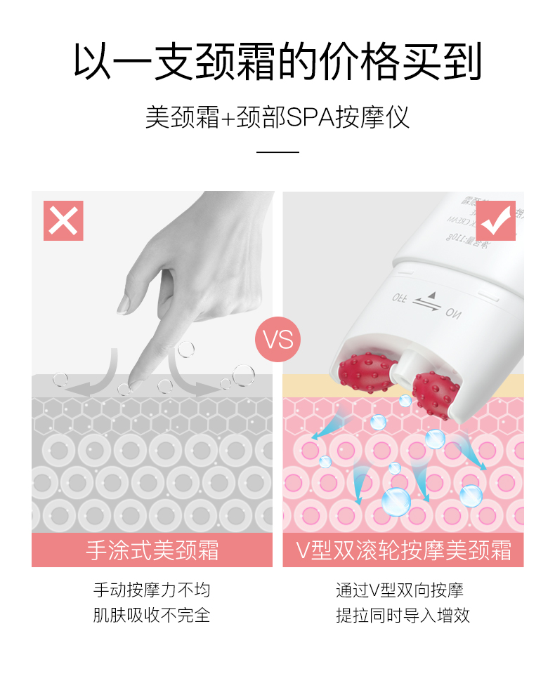 双滚轮颈部护理美颈霜,颈纹小熨斗,打造天鹅颈,突显高雅气质,在人群中焕发光彩~