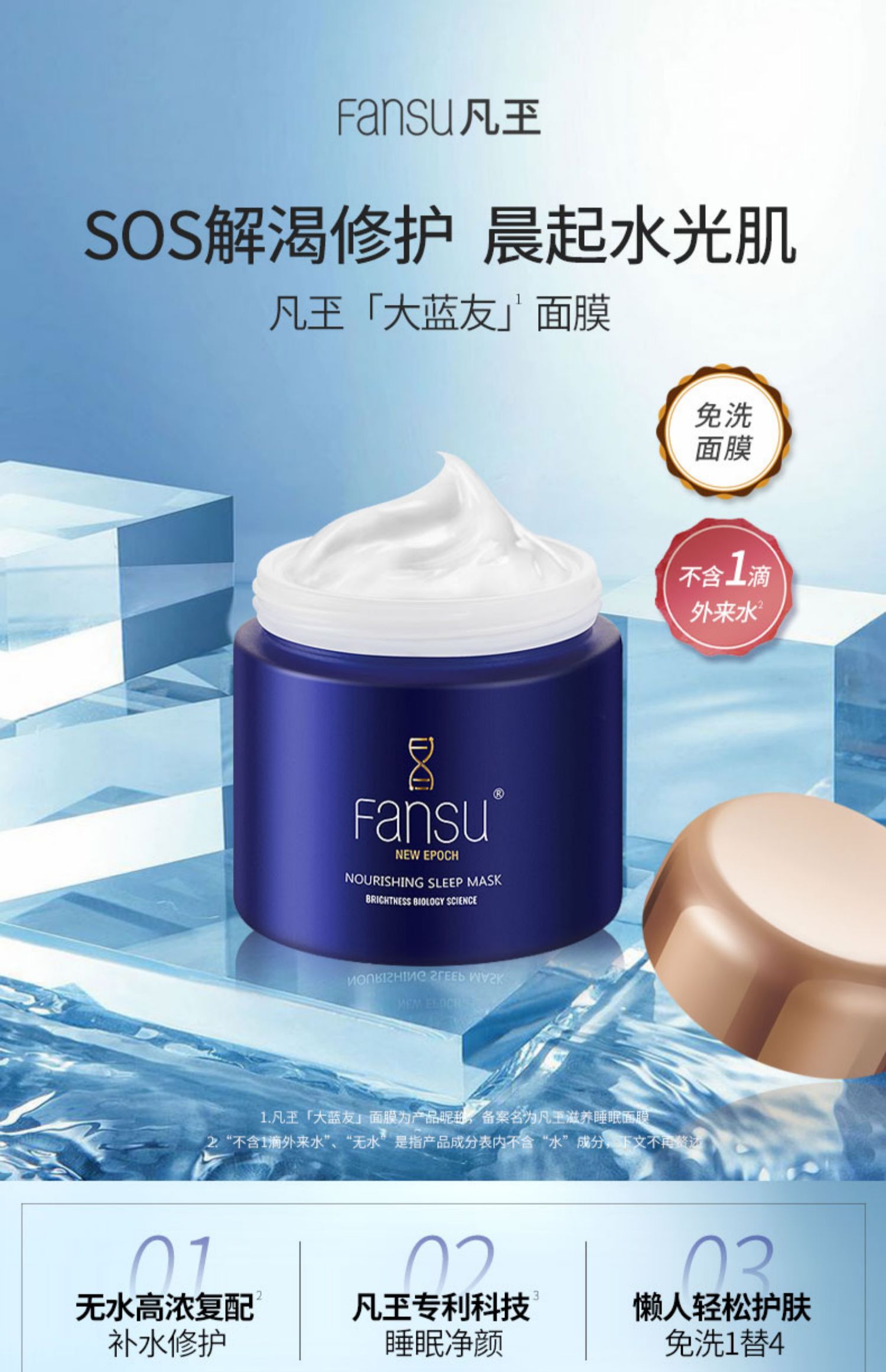 【张继科强力推荐】】凡玊滋养睡眠面膜,含rHRD多肽高活重组水蛭素重塑健康肌底清爽,补水嫩肤,细腻水润,锁水保湿,让肌肤夜间喝饱水,晨起水光肌,连睡觉都在补水!