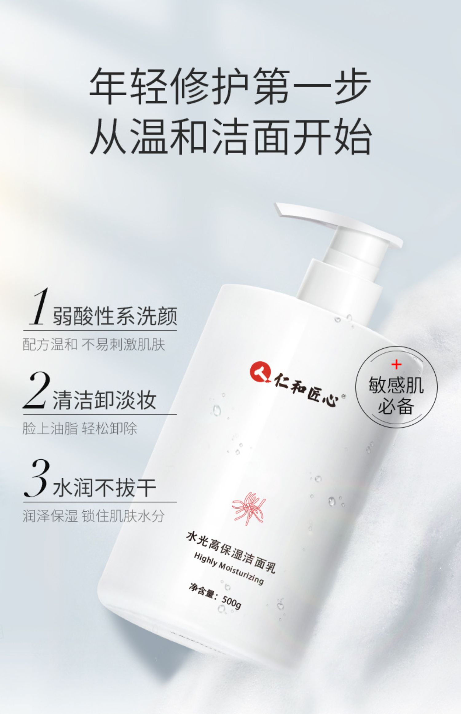 屈臣氏李佳琦直播间推荐官方旗舰店正品仁和药业仁和匠心氨基酸洗面奶男士补水保湿控油祛痘淡化痘印去黑头深层清洁收缩毛孔女士洁面乳学生专用护肤品套装化妆品全套!