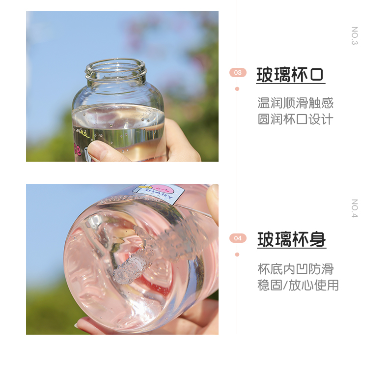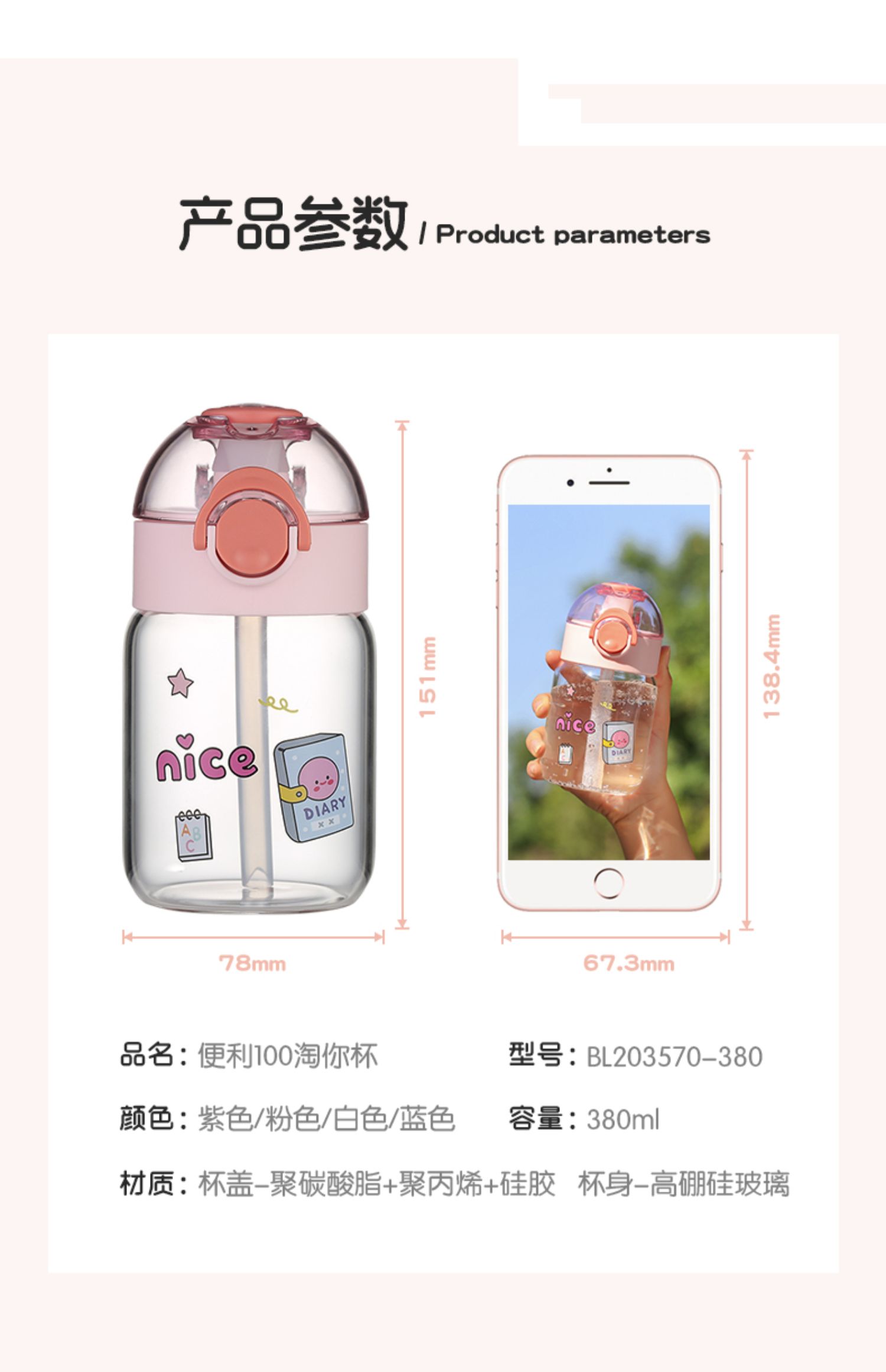 透明玻璃杯带吸管,喝的水都是甜的!一键弹盖,操作更方便,食品级硅胶吸管,用起来更安心,密封防漏,隐藏式便携提手,外出携带超方便的~【赠退货运费险】