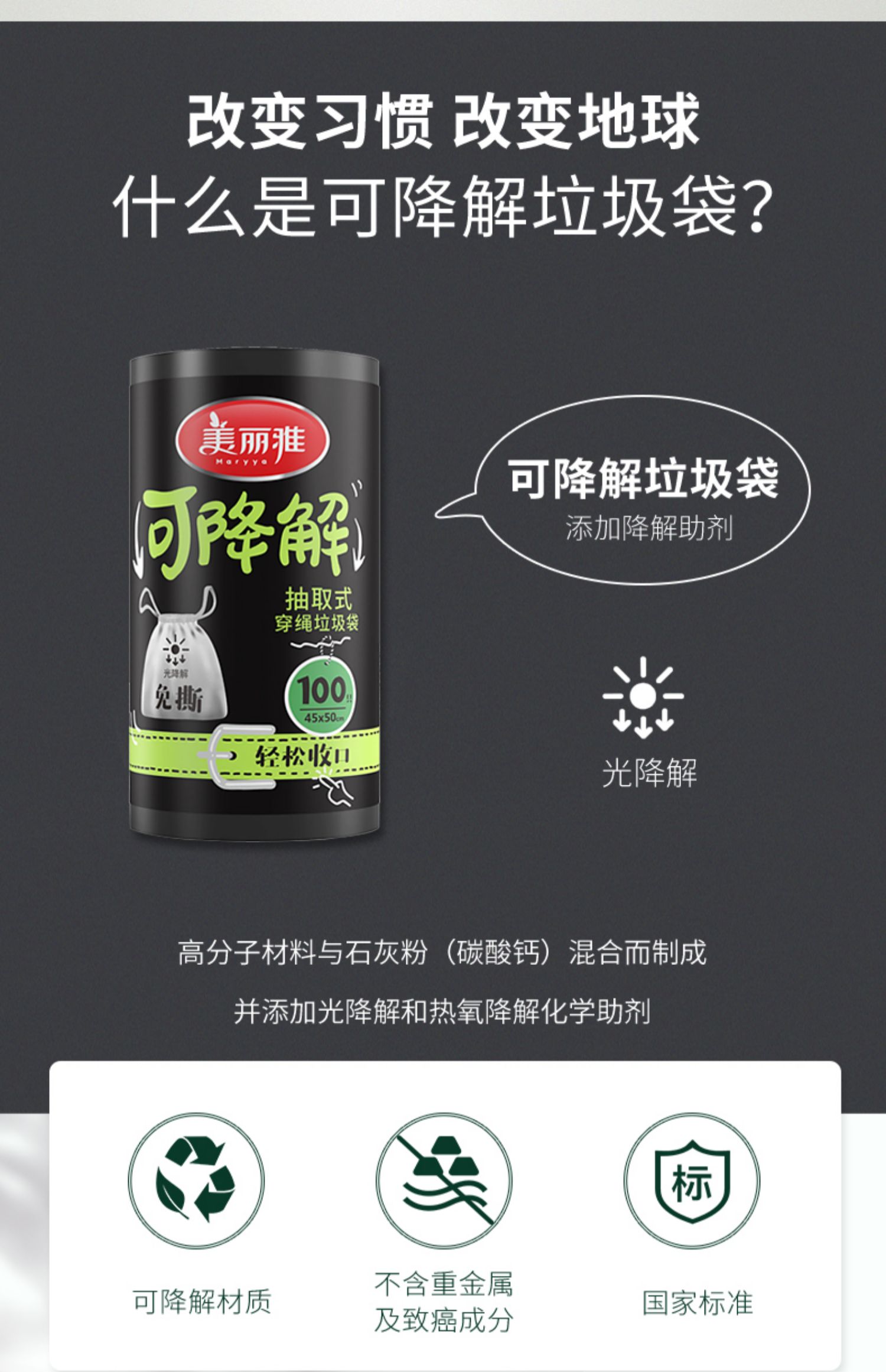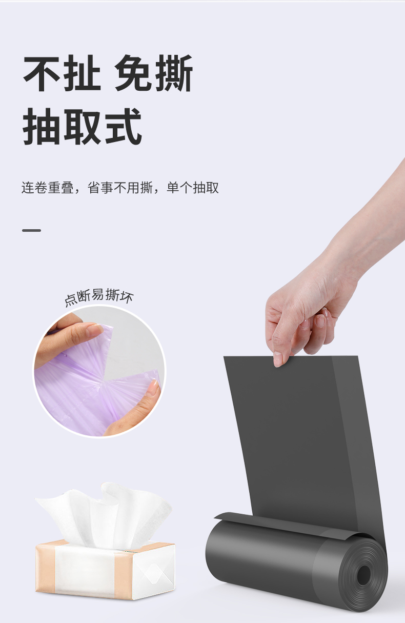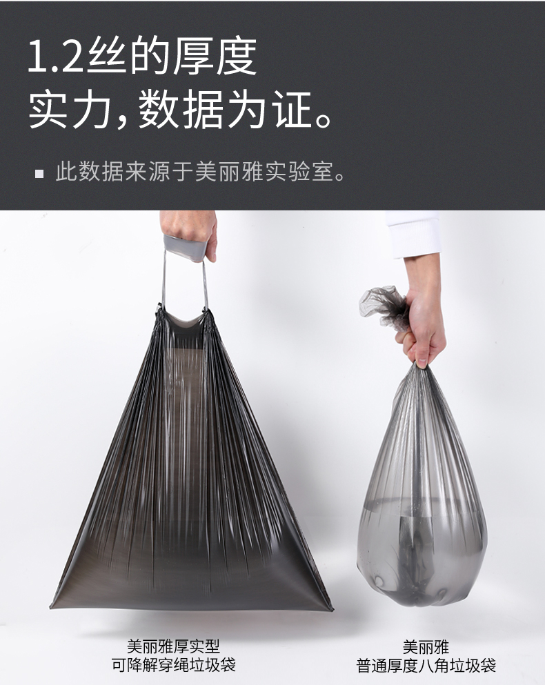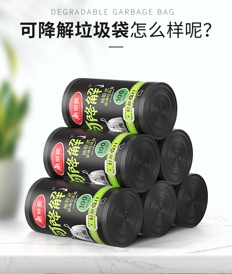 环保可降解的垃圾袋!!自动收口设计,加厚承重力强,厨余垃圾不易破漏,单个抽取式,免撕的更方便,美丽雅高品质值得信赖!
