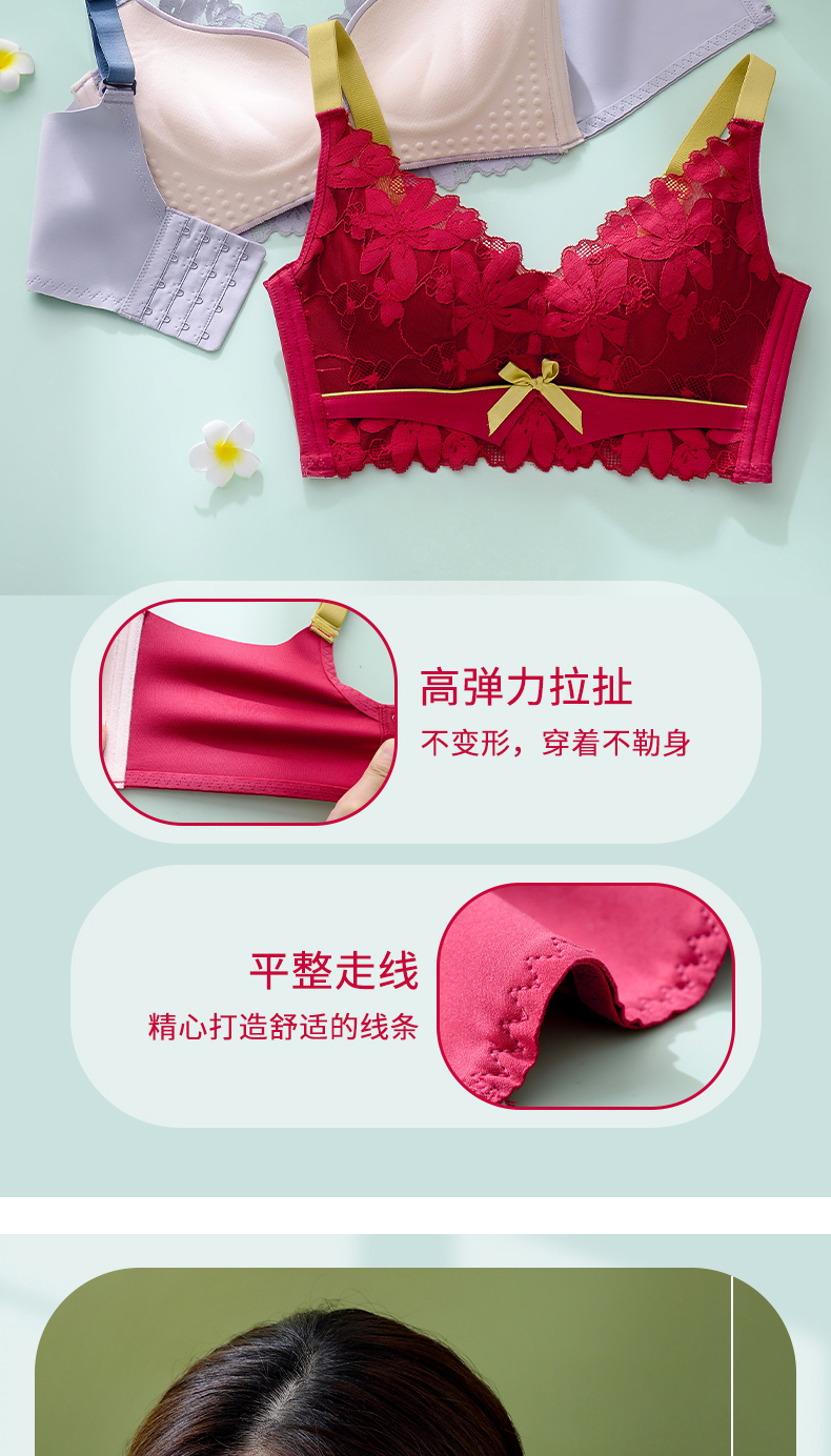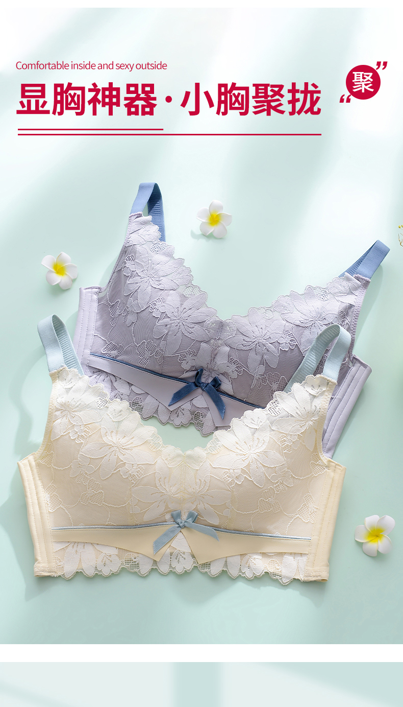 无钢圈内衣女大胸显小,文胸薄款缩胸罩乳胶调整型防下垂,大胸显小穿衣显瘦,大容量全包容,轻薄透气,舒适防滑宽带