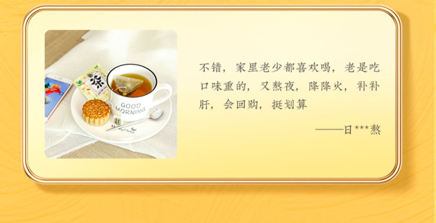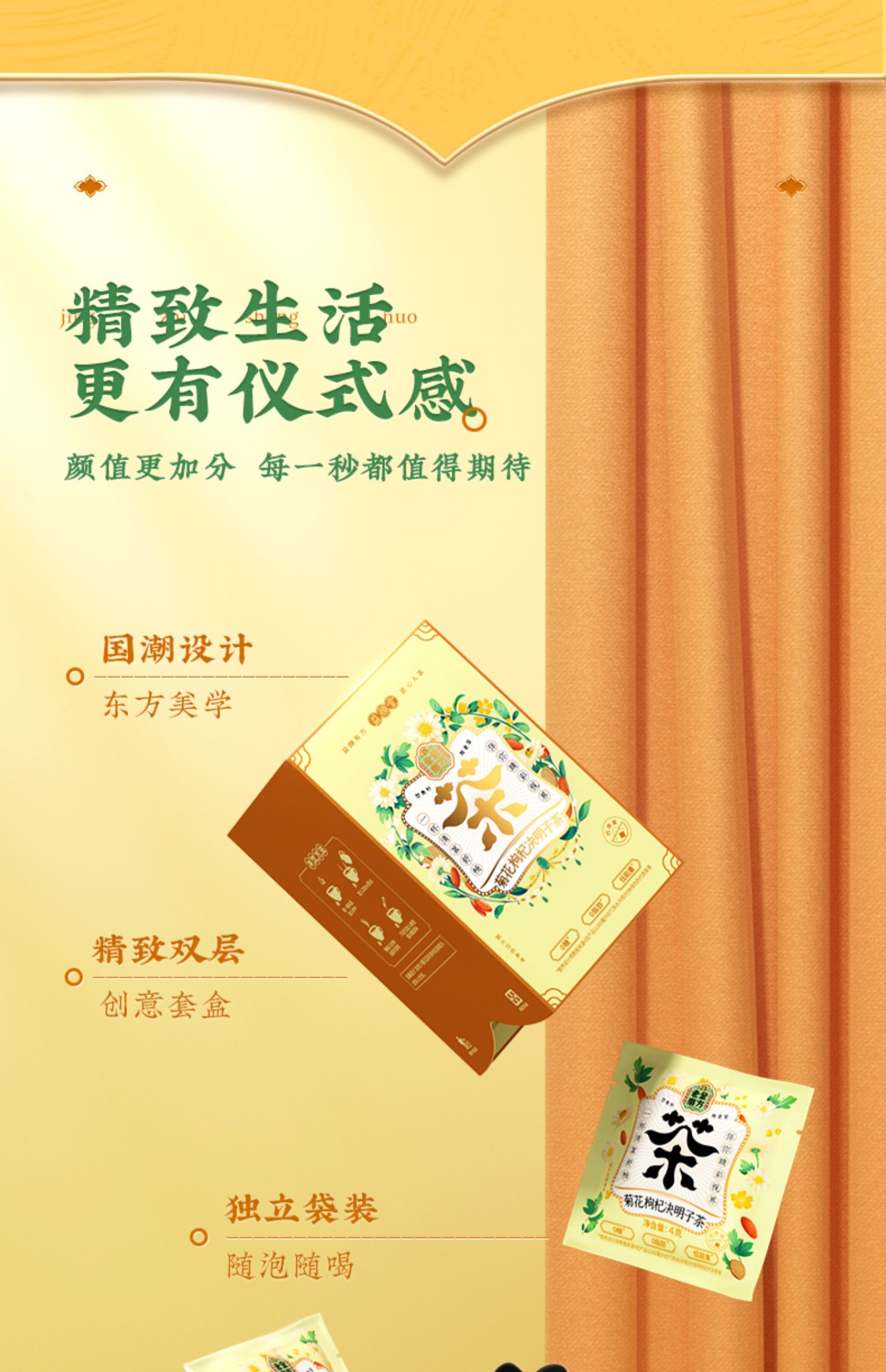 炎热夏天,上班族都爱喝~老金磨方菊花枸杞决明子茶!精选10种食材,不加防腐剂放心喝!独立小包装,冲泡更方便!常喝有降火,缓解口臭,便秘,长痘等效果!