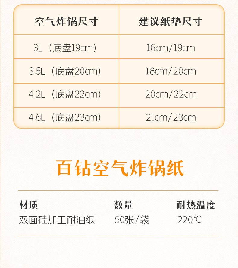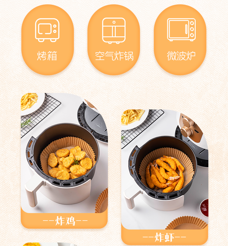 【50只】百钻空气炸锅烤箱专用吸油纸