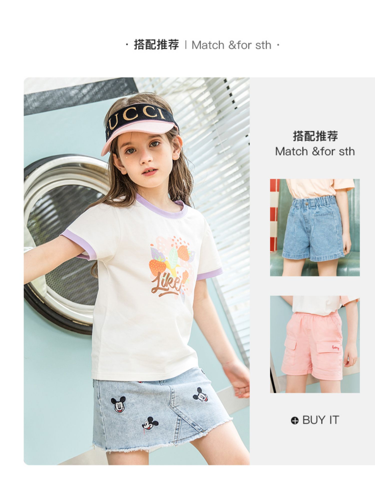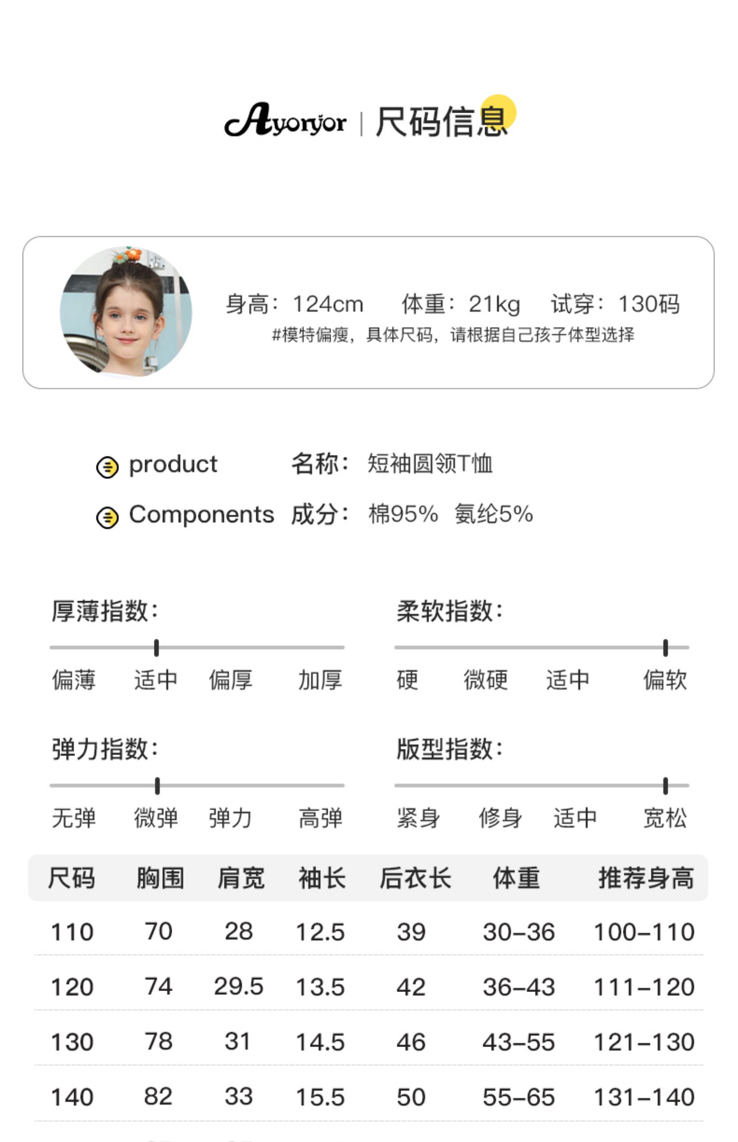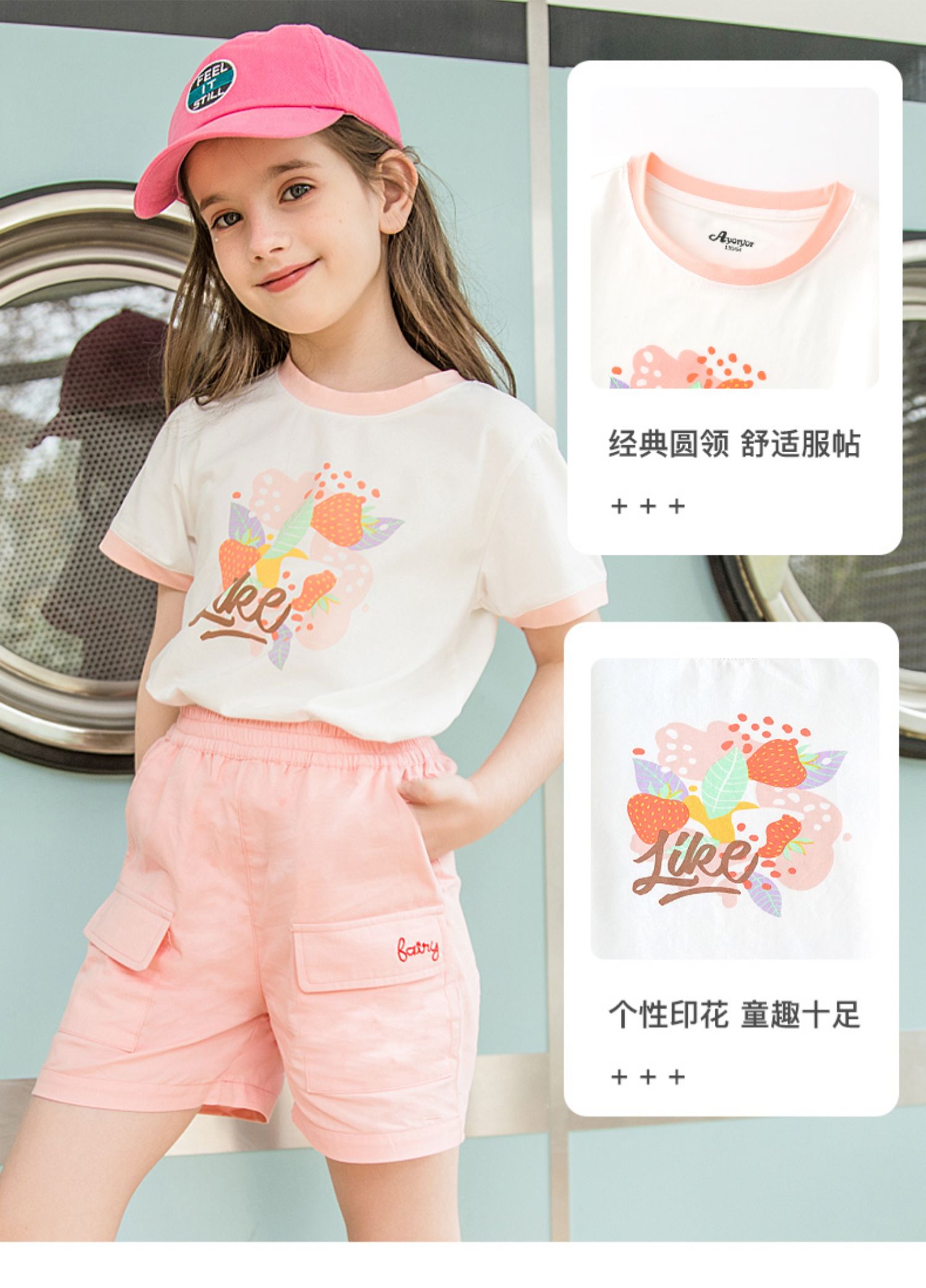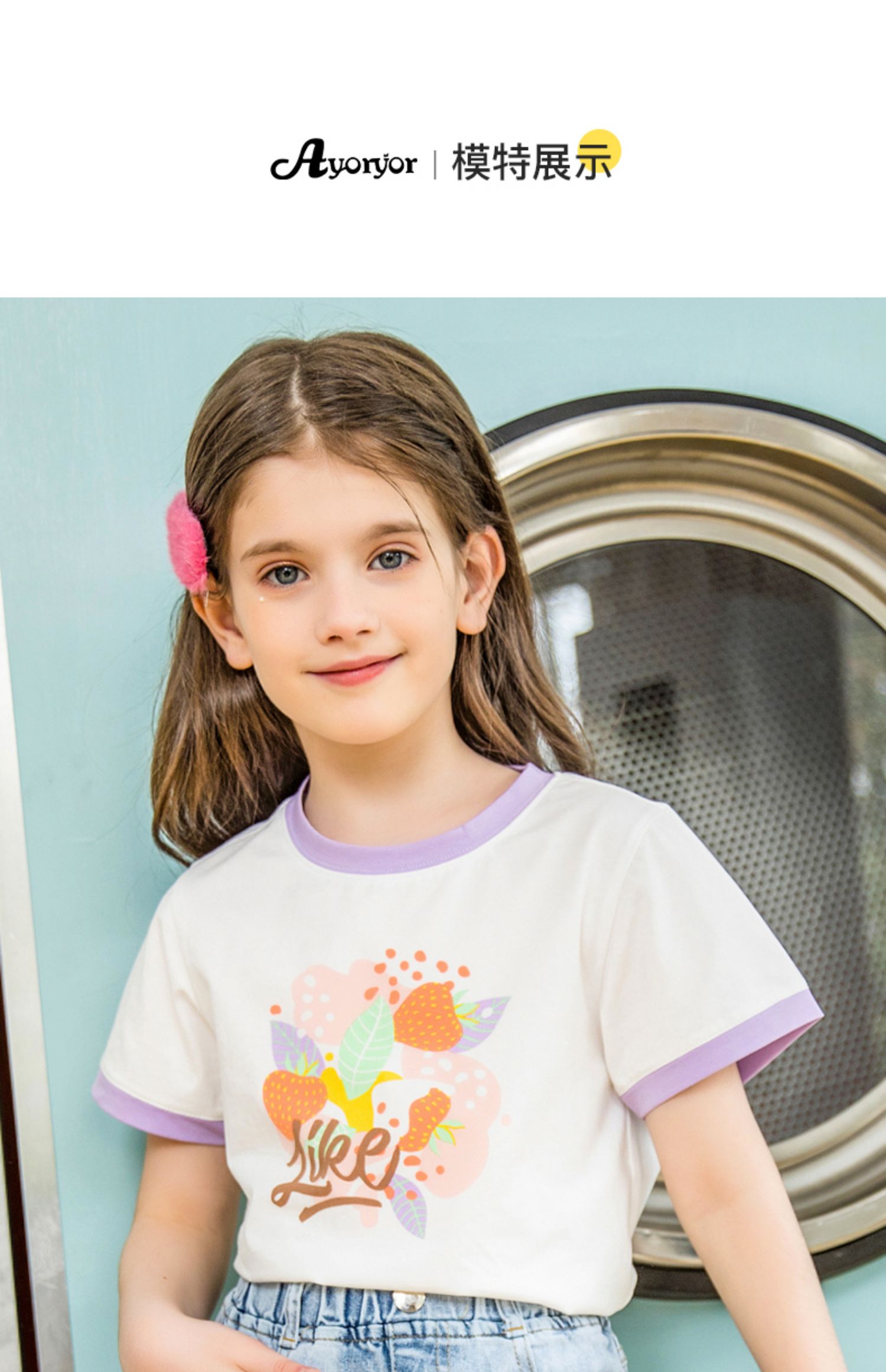 【永旺同款】夏装新款冰瓷棉女童短袖T恤