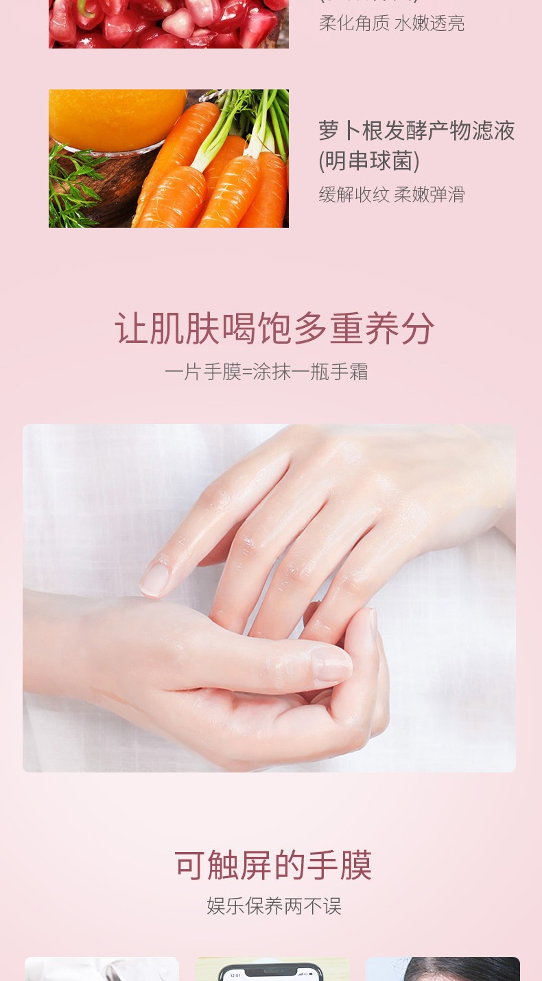 温和无刺激,修复干裂,补水保湿,软化角质,滋养修护肌肤,淡化手纹,每天敷一敷,双手特白嫩!给你的双手SPA级的呵护~