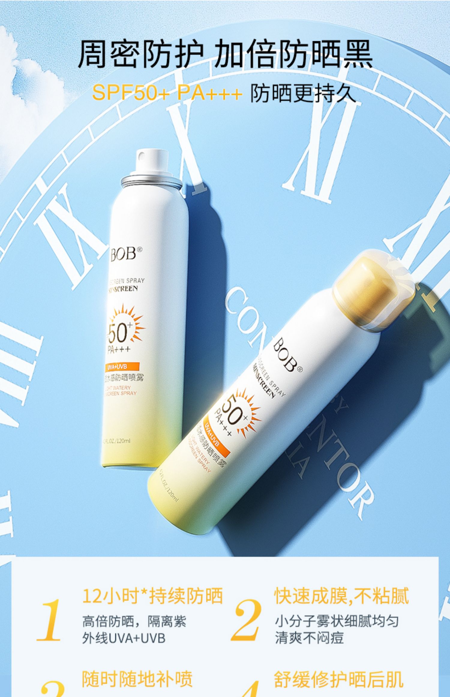 BOB防晒喷雾spf50+紫外线隔离