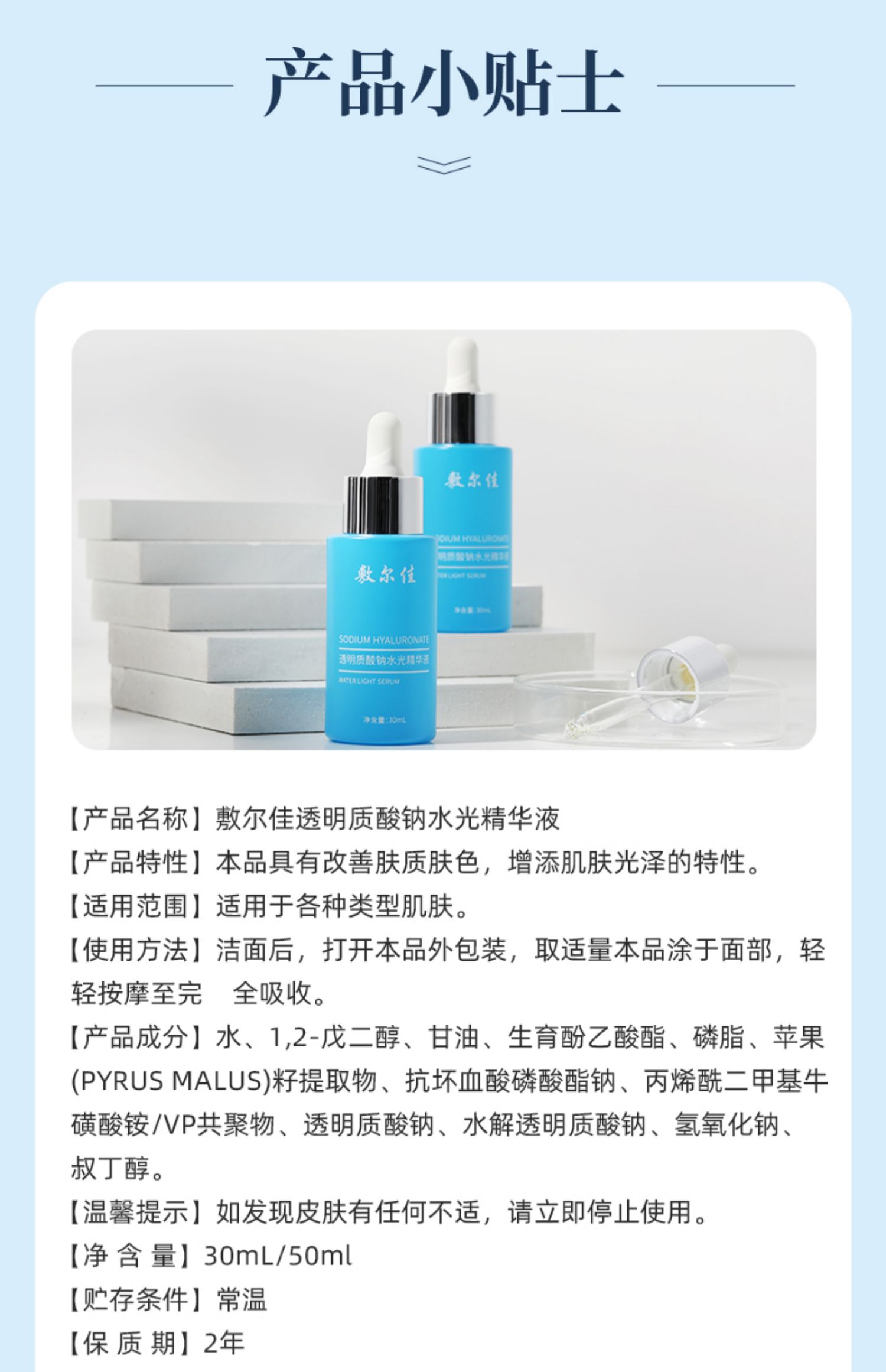 敷尔佳透明质酸钠水光补水女精华液