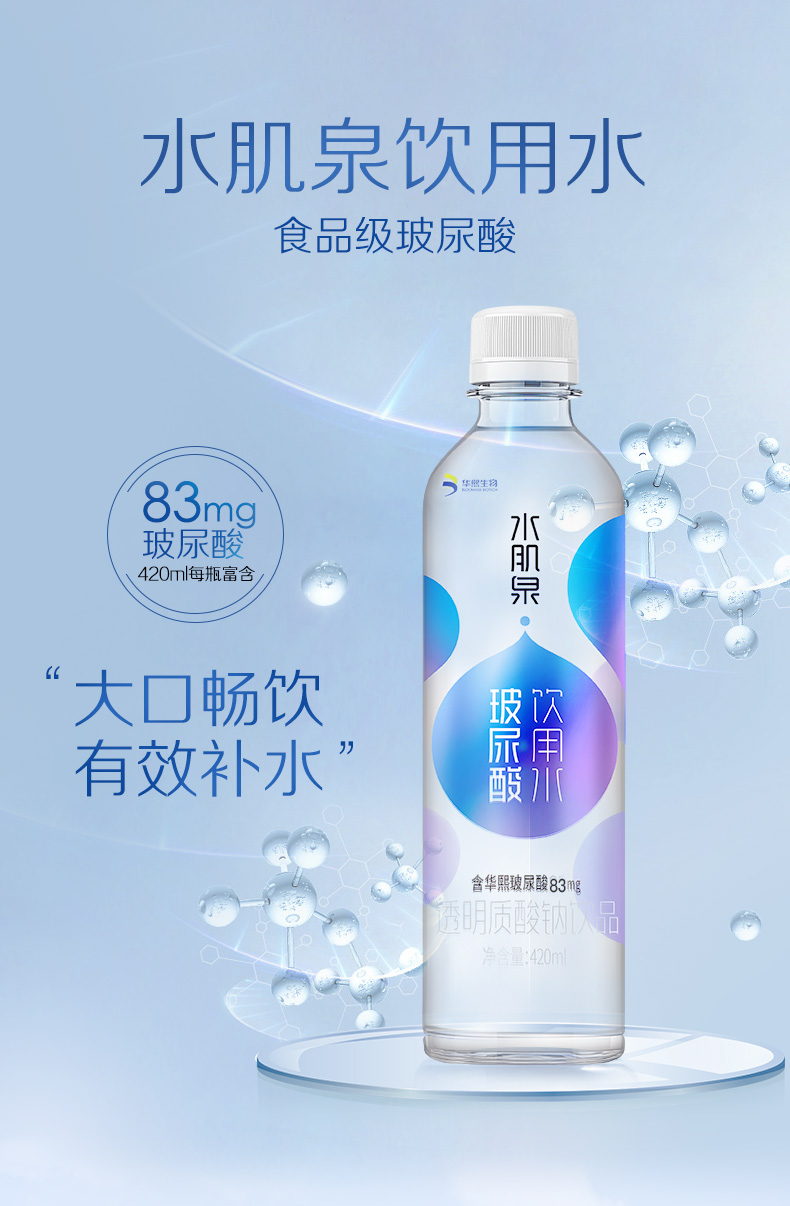 水肌泉玻尿酸饮用水,无添加,0糖0卡0能量,420ml*6大瓶,含食品级华熙玻尿酸83mg/瓶,美美的喝水,喝水就能美美的。让您和家人生活更美好。线下一瓶就要8块钱!