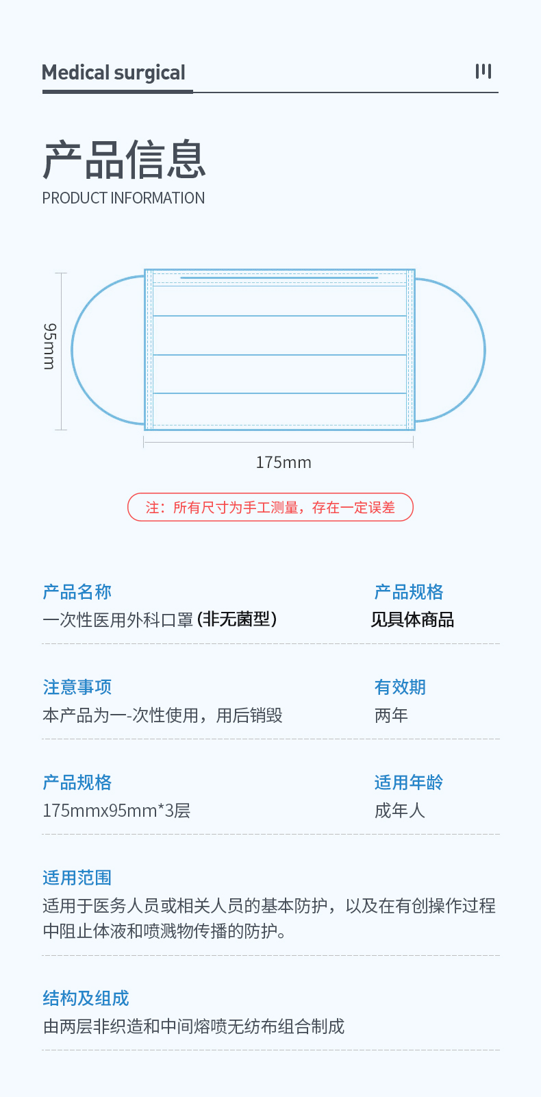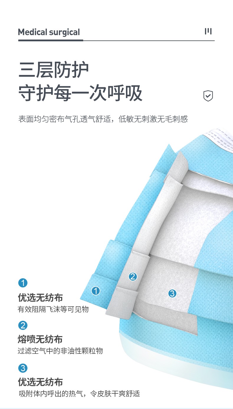 超值100个!帝式医用外科口罩!三层防护,灭菌级防护口罩,贴合面部轮廓,畅快呼吸,过滤细菌,弹力挂耳,结实舒适不勒耳~低敏无刺激无毛刺感,亲肤无纺布,柔软细腻,让你的每一口呼吸,都安全的支撑!