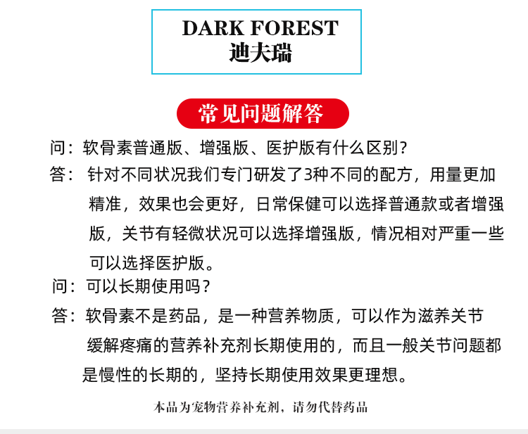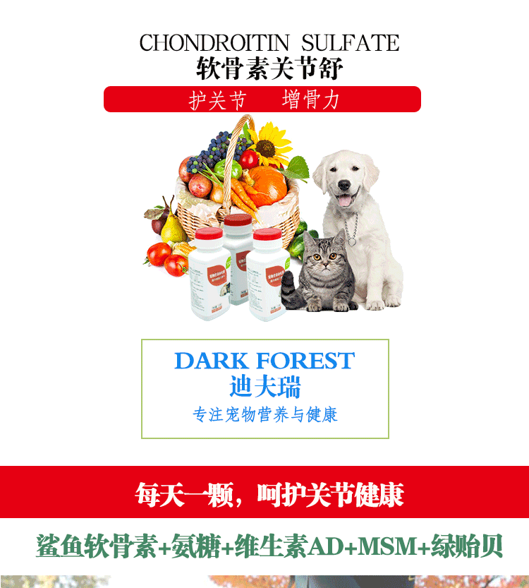 鲨鱼软骨素葡萄糖胺,双重关节营养,犬猫通吃,宠物专用配方,改善狗狗关节问题,缓解疼痛,滋润软骨,减轻关节磨损