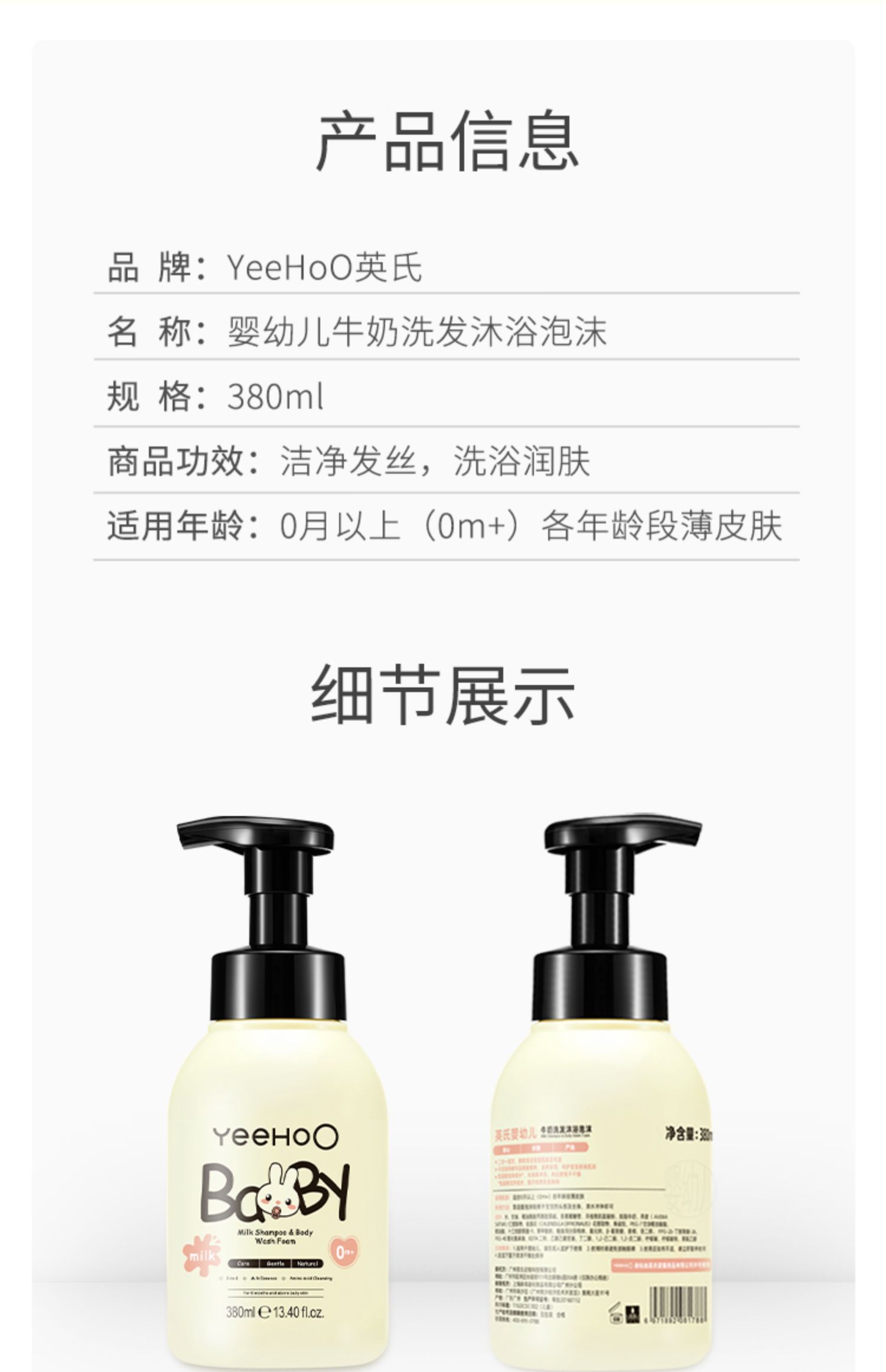 【23号0点限时9.9】英氏婴儿沐浴洗发二合一60ml,严选安全成分,氨基酸深层洁净,温和不刺激~牛奶精华泡泡,1瓶2用,0月宝宝也可用!宝妈放心选择!