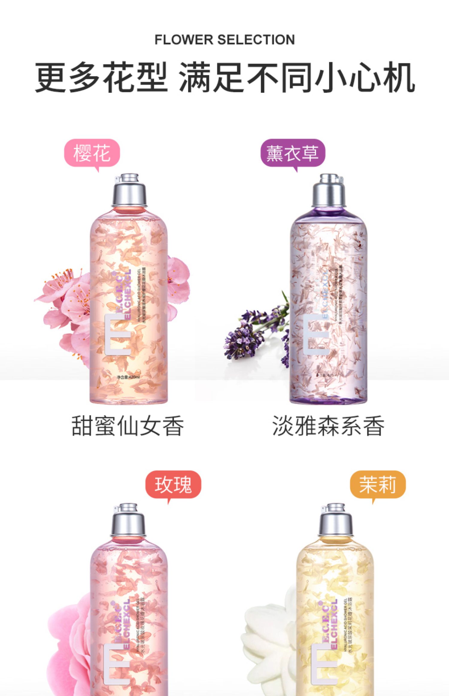 多种香味可选,真鲜花真花瓣,少女心满满~温和清洁,泡沫丰富易冲洗,让肌肤更水嫩有弹性!纵享花瓣沐浴“SPA”,呈现你的丝滑美肌,留香24小时!妥妥的撩汉神器,仙女必备!