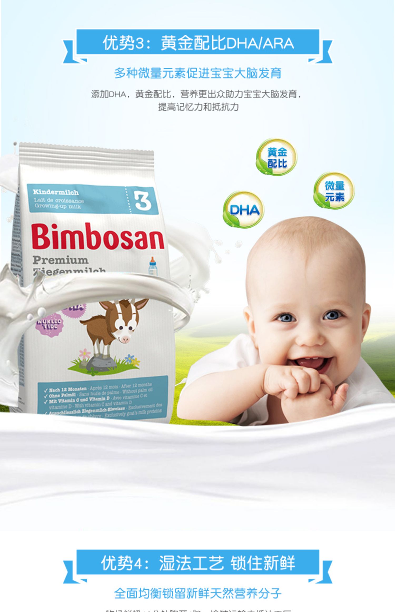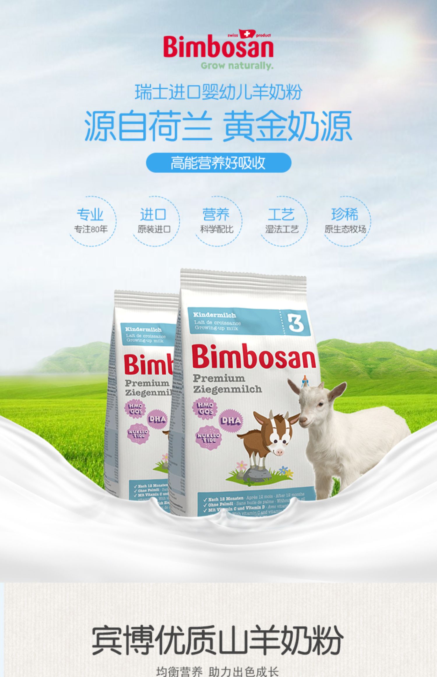 宾博瑞士进口婴幼儿配方羊奶粉400g