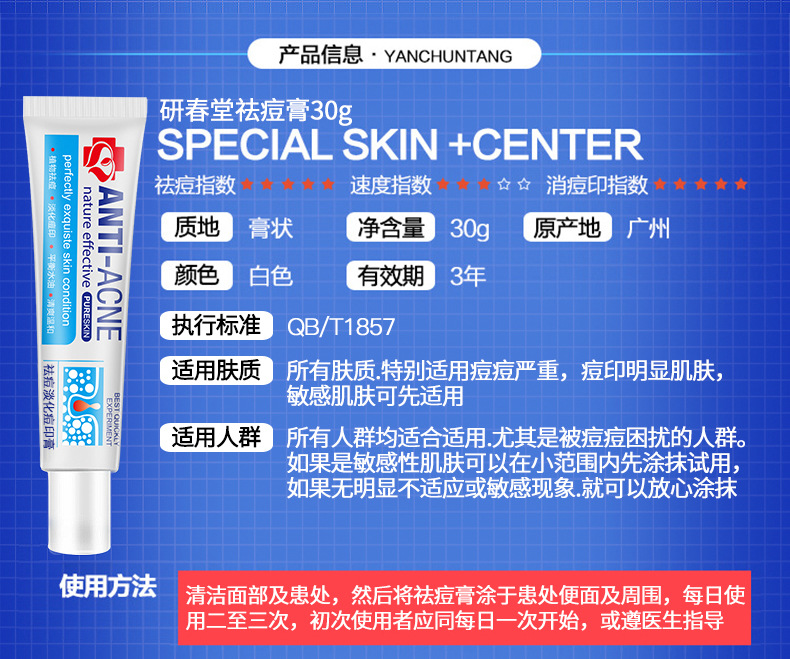【第二件半价】【研春堂】祛痘膏青春痘淡化痘印痘疤30g,祛痘淡印,去痘红肿闭口粉刺,平衡水油,舒缓镇静肌肤~~【7天无理由退货】