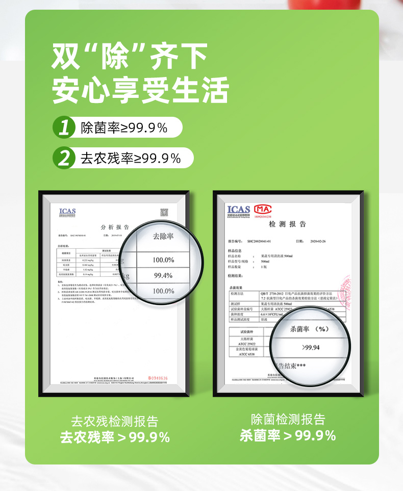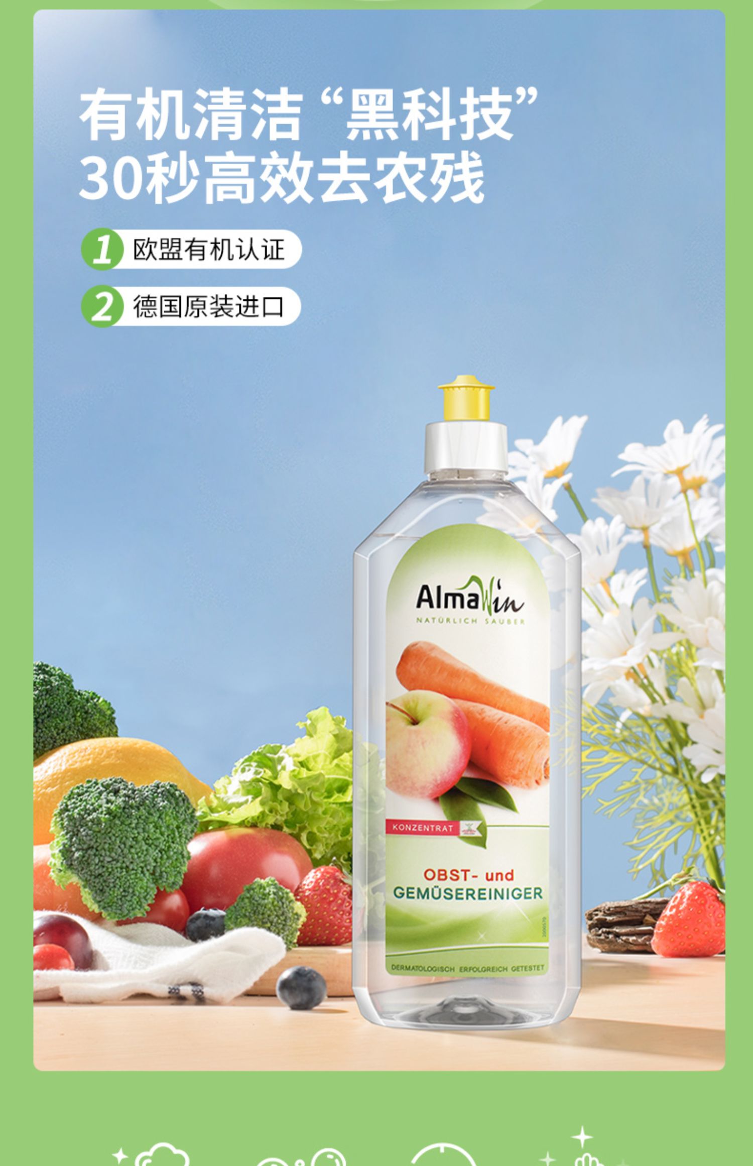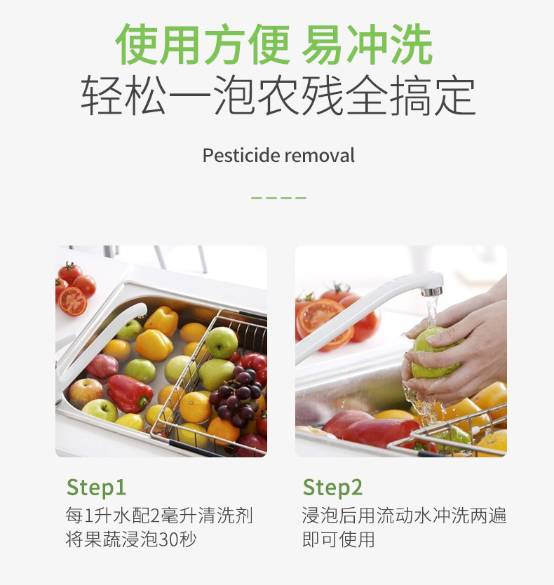 30秒高效清洁,有效除菌去农残,入口更安心,去除水果蔬菜表面农残、细菌,有机清洗剂,入口更放心!水果蔬菜一瓶搞定,让老人孕妇儿童更安全,家人更放心!