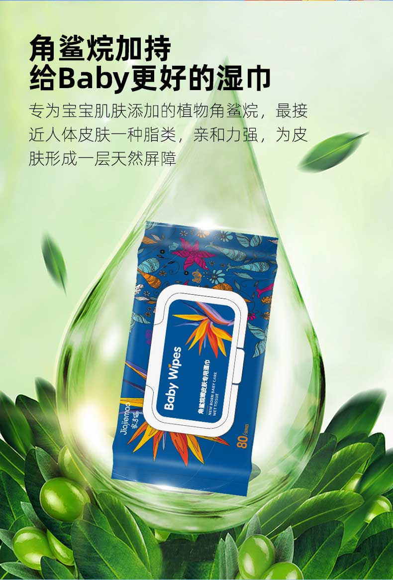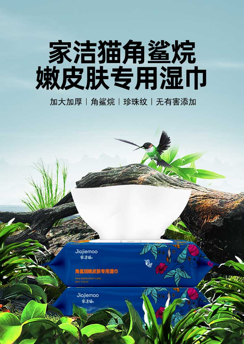 【家洁猫】角鲨烷亲肤湿巾纸80抽*5包,加厚珍珠纹!通过GMP、EPA、SGS三大国际品质认证!纯净手口配方,用更安心!【七天无理由退换】