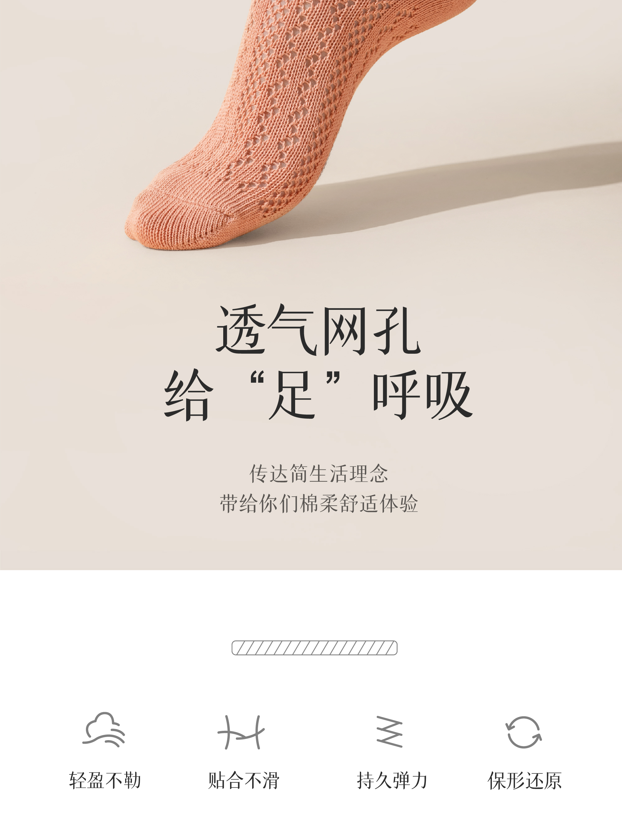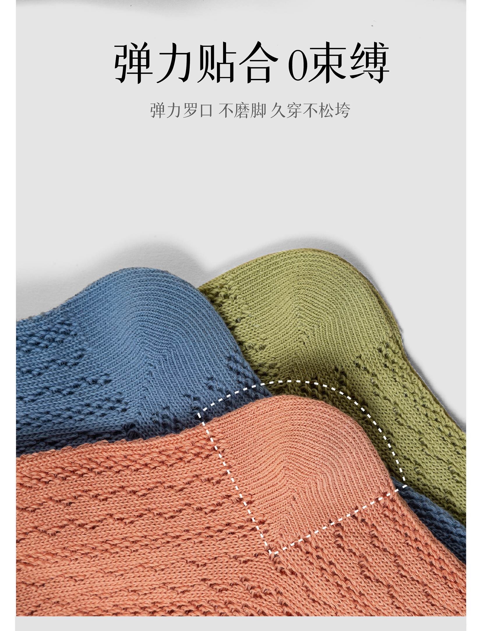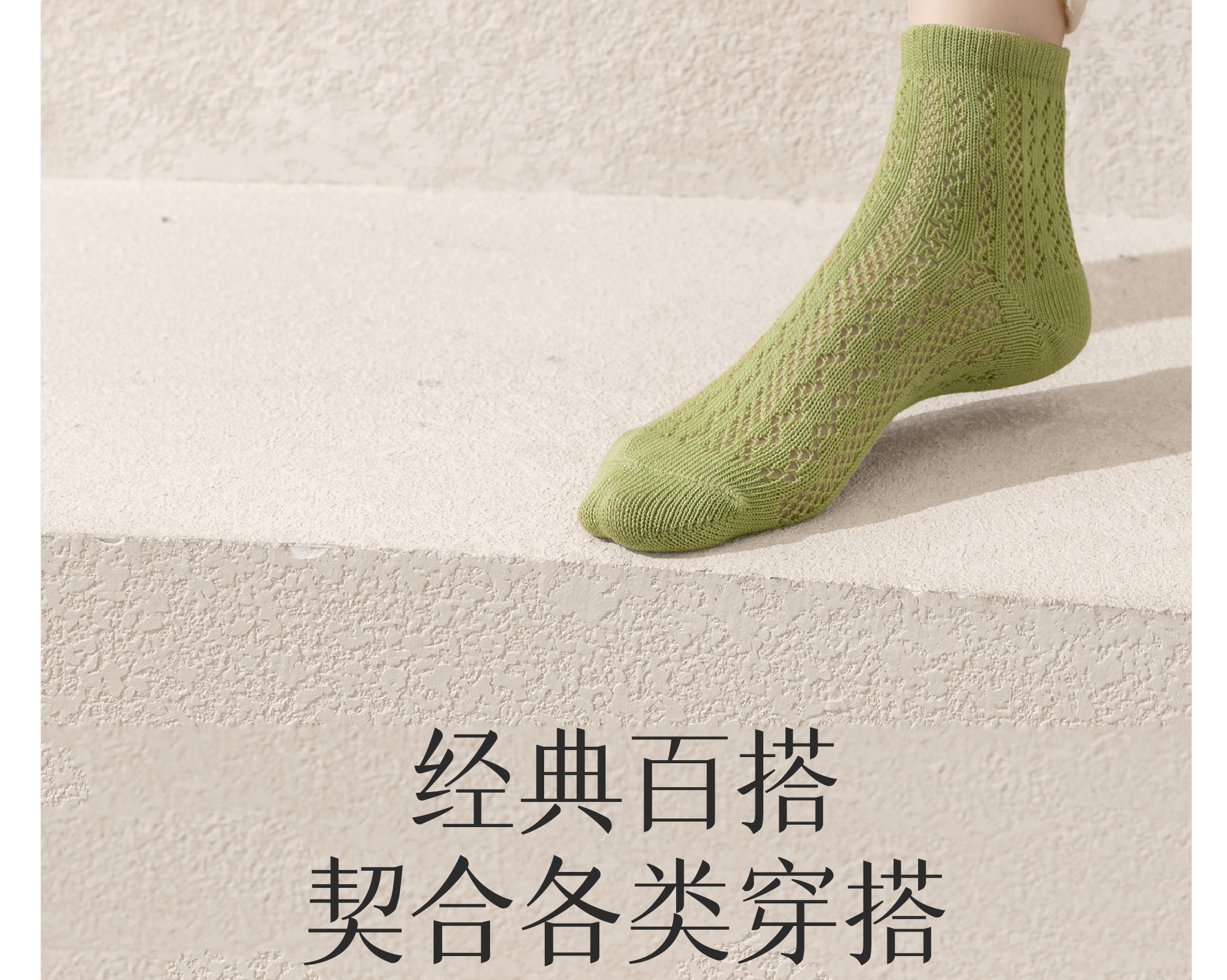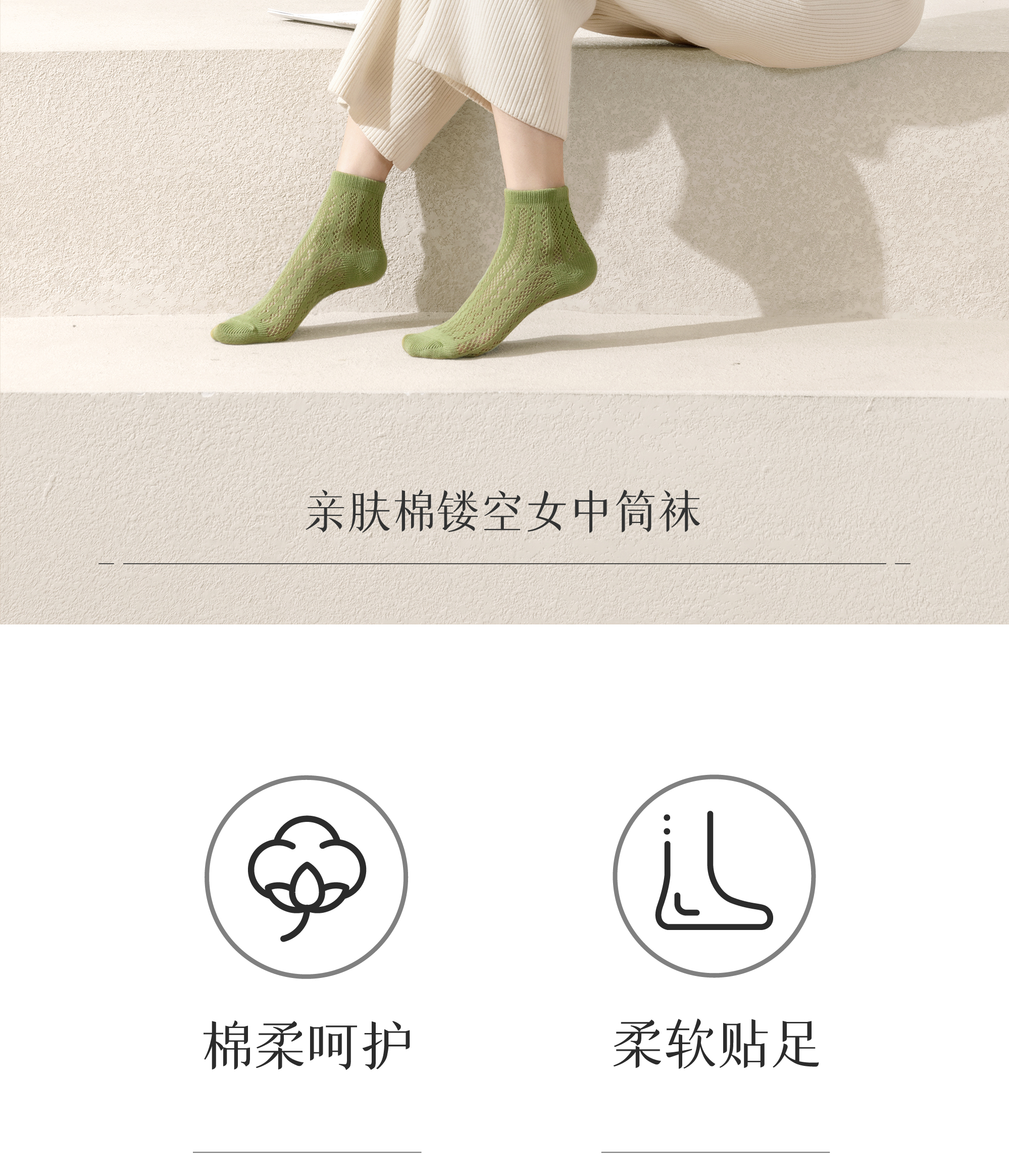 【榄卡】纯棉女士网红缕空中筒袜子5双装