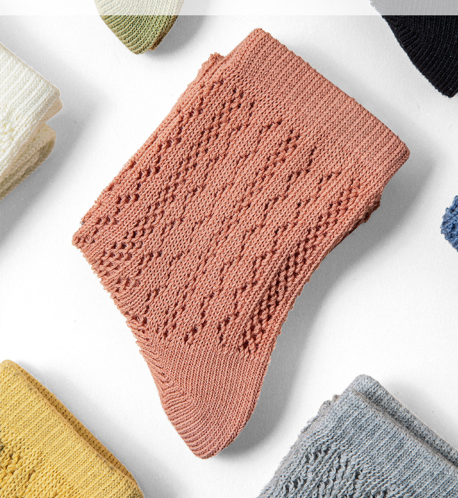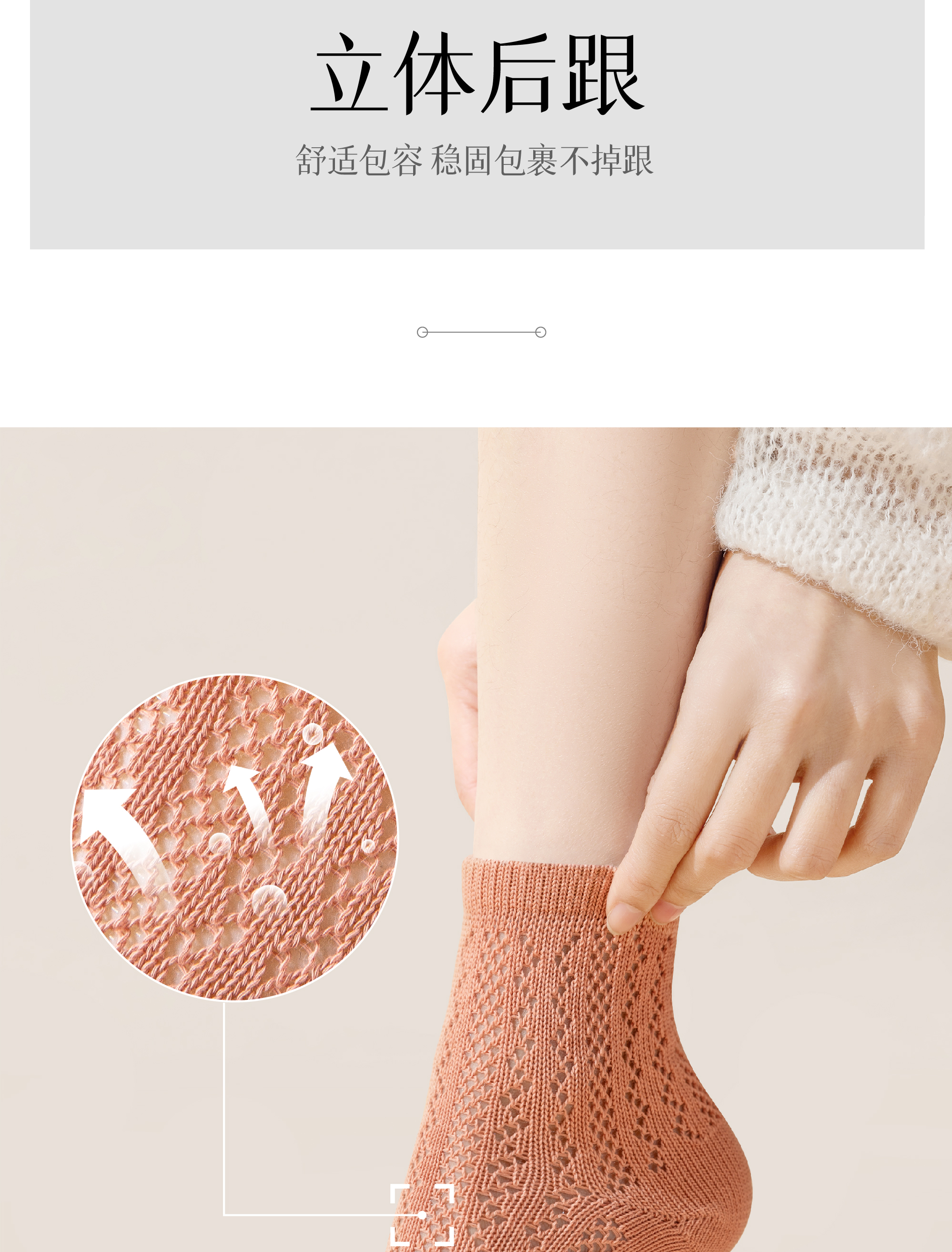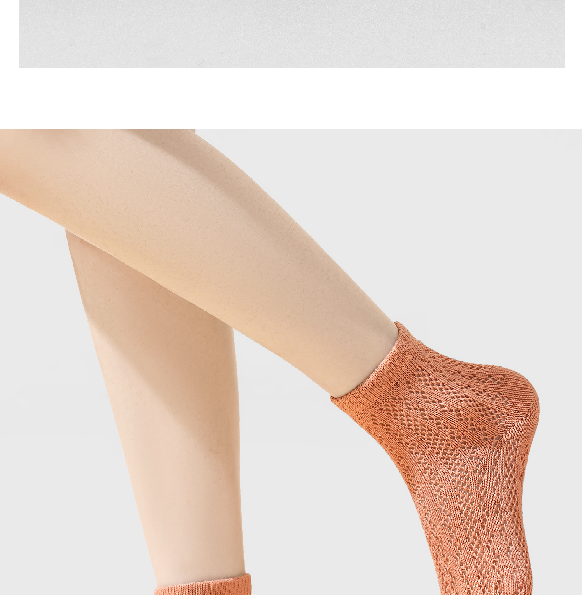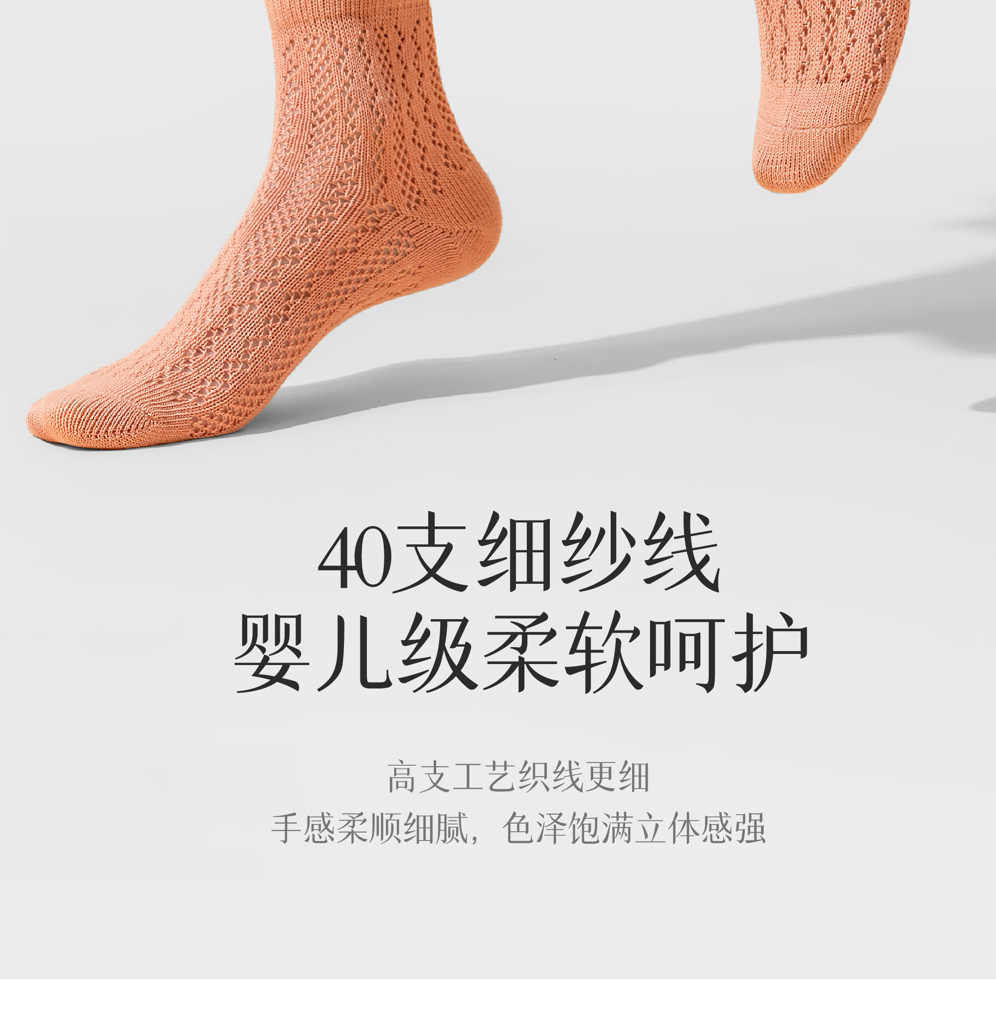 【榄卡】纯棉女士网红缕空中筒袜子5双装