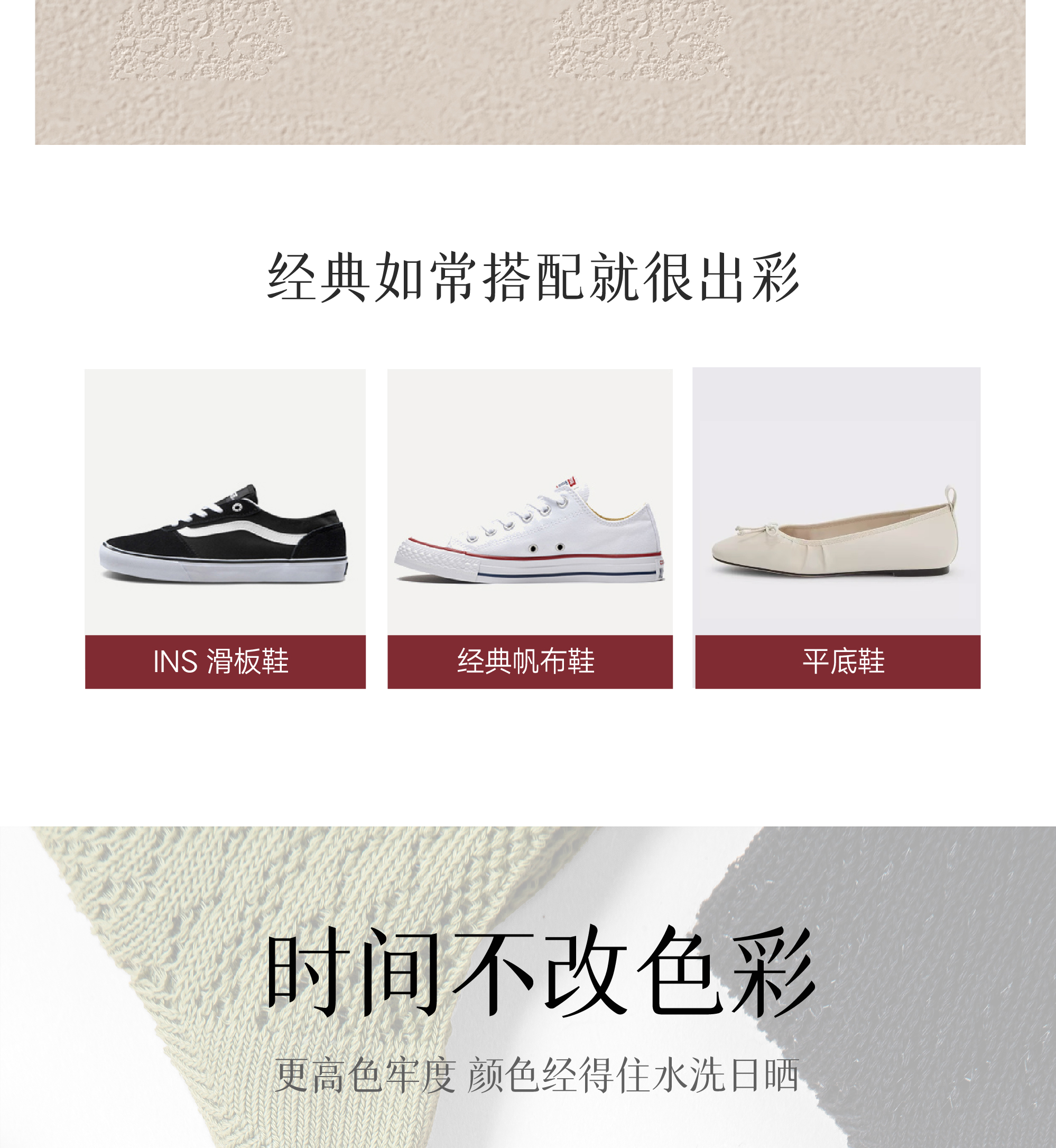 采用优质新疆长绒棉,精细做工,弹性好不紧绷,柔软舒适,透气不闷脚,吸汗防臭,不起球不掉色,高颜值时尚百搭浅中简袜!定染原料花边中筒堆堆袜!