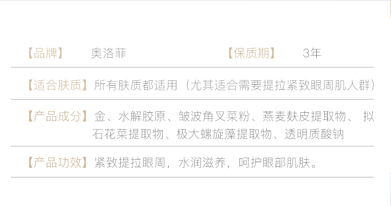 【60片装,第二件半价】奥洛菲贵妇级黄金紧致滋养眼霜,水溶性晶冻贴膜,提拉紧致,改善干细纹,淡化熊猫眼,淡皱滋养!日常护理,熬夜急救,改善+修护眼周问题!【赠运费险】