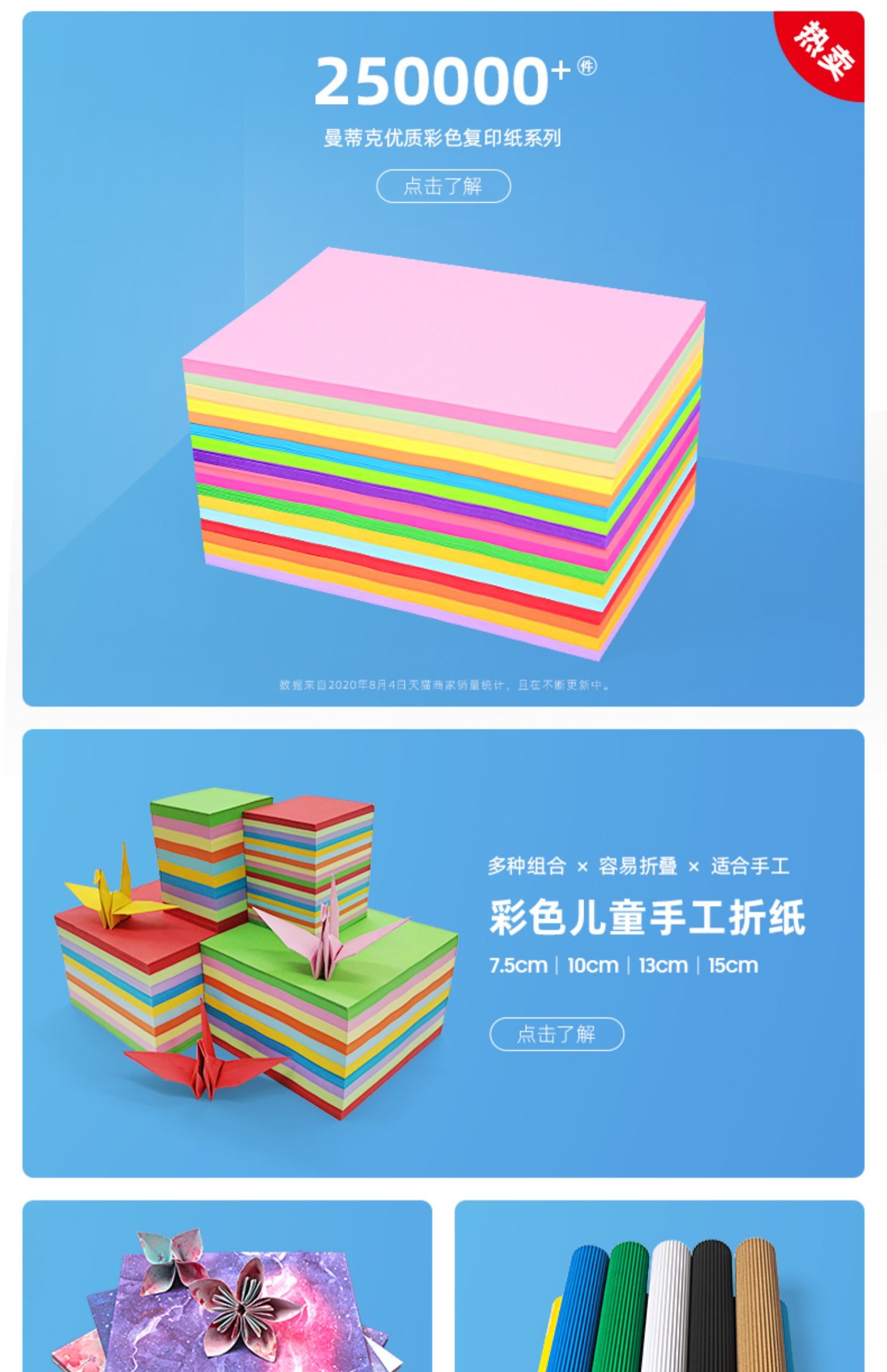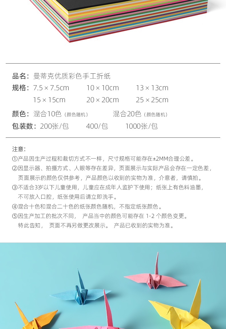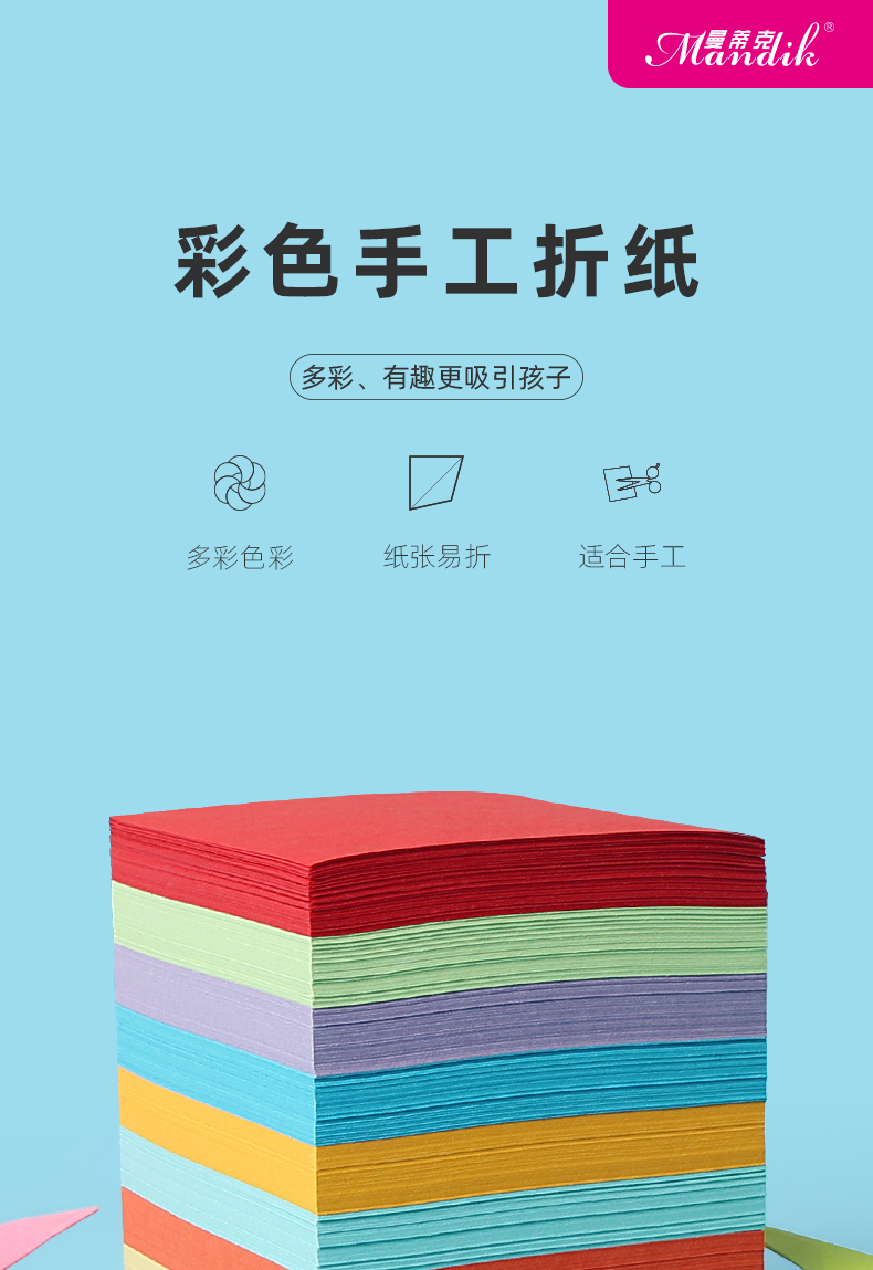 【mandik曼蒂克】a4折纸,彩色彩纸手工纸剪纸,15*15厘米手工纸材料,正方形儿童幼儿园千纸鹤,手工大张制作玫瑰花DIY折纸书!