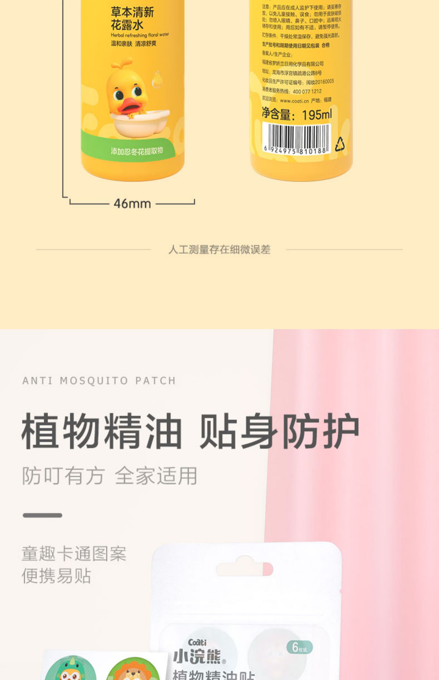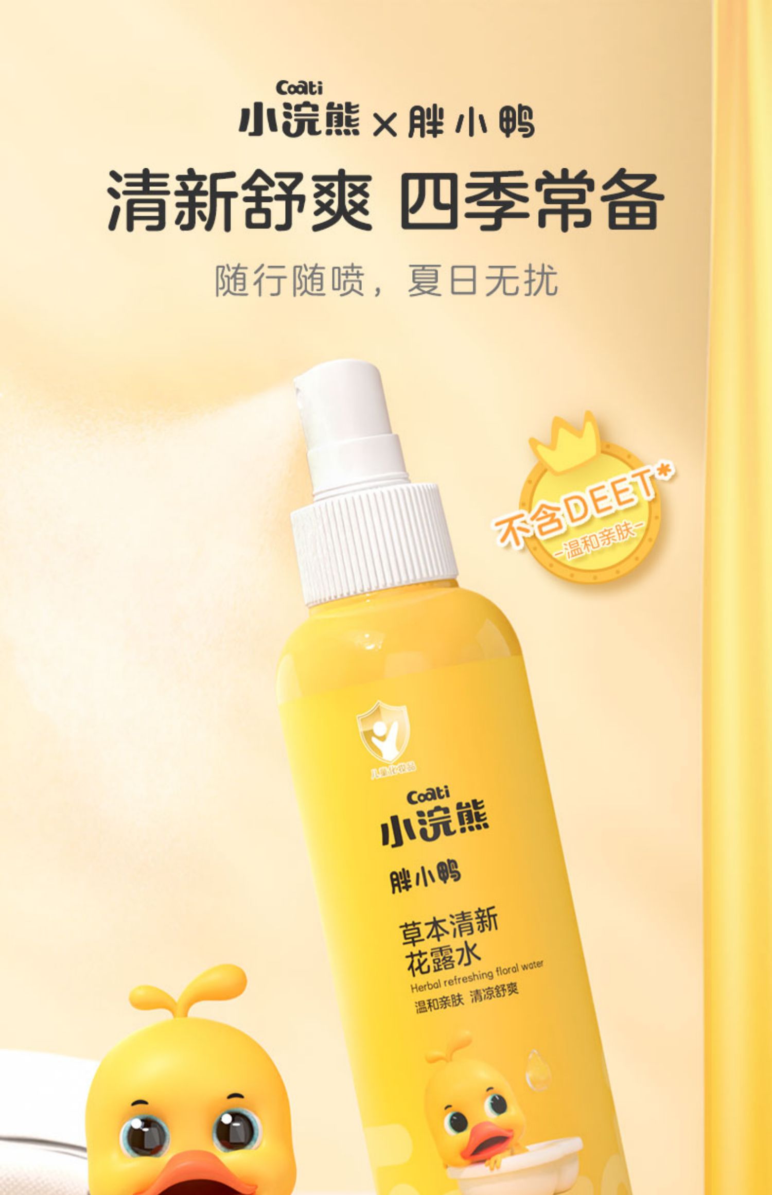 【驱蚊液花露水+防蚊贴24片】小浣熊+小黄鸭联名款,蕴含金银花、艾叶等草本精华成分,0添加,去痱止痒驱蚊,轻轻一喷舒爽整个夏天~