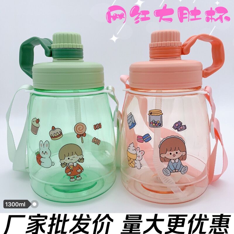 【赠运费险】夏天来了,一定要多喝水~快囤户外运动吸管大肚杯~1300ml超大容量,满足你的饮水需求,还自带贴纸,自己随意贴,真的敲可爱~