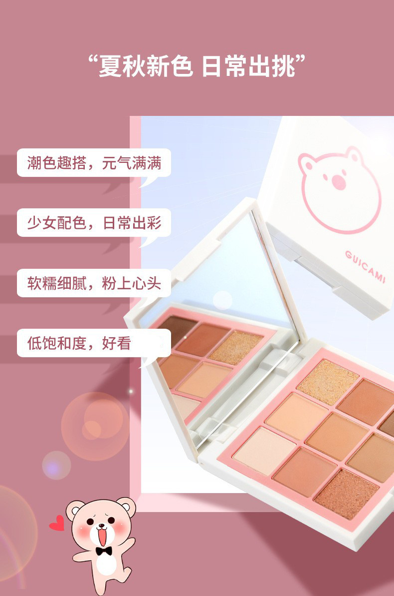 2021年新品发售,皮可熊9色眼影盘,爱意肆意生长,粉质丝滑细腻,触感软糯,通透好着色,色彩分明显色度高,不结块不飞粉,一盒涵盖所有经典色系,实用百搭好帮手~~