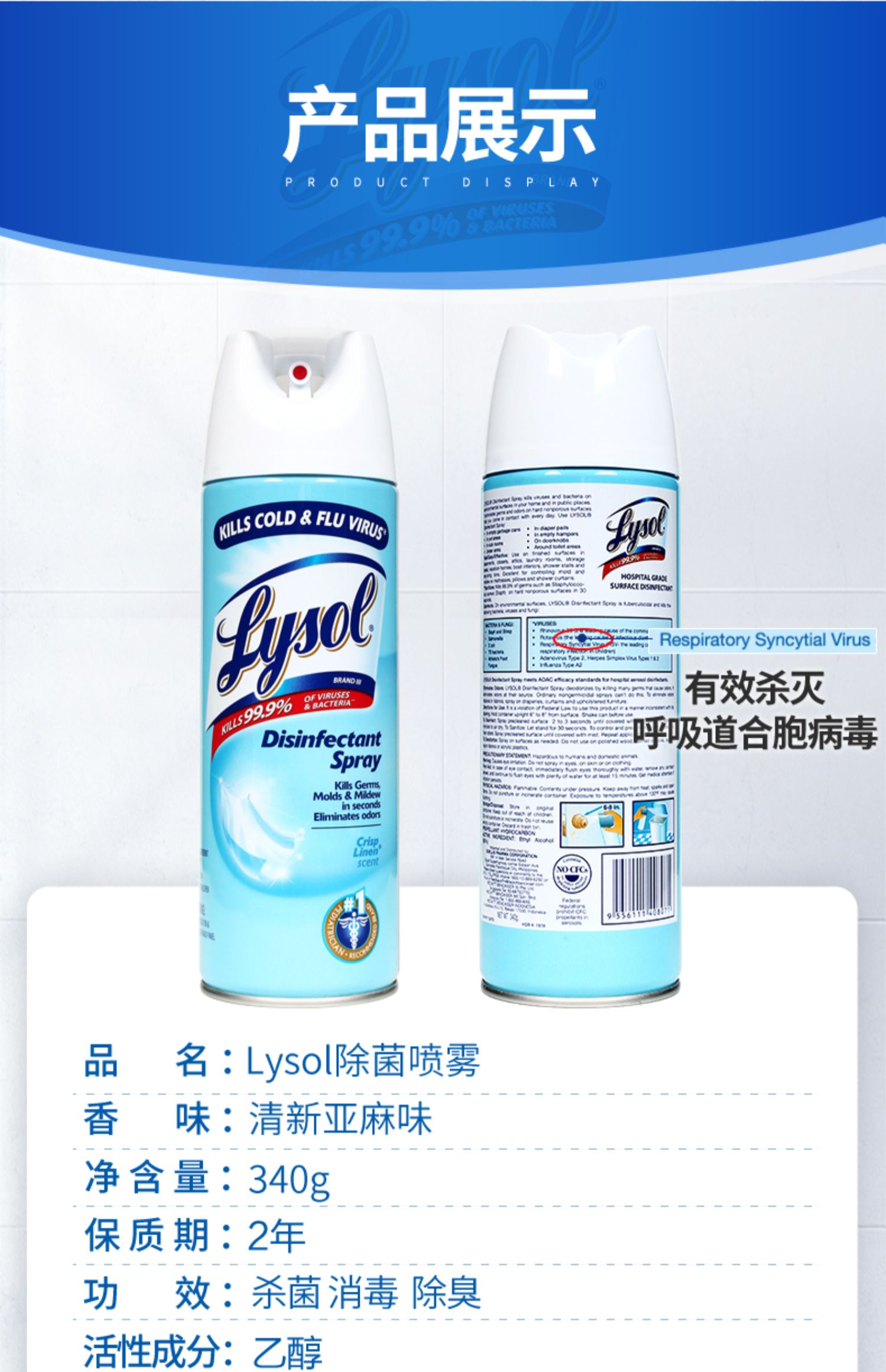 Lysol专注家居清洁131年,抑制霉菌,长达1周。除菌去异味,一喷即可。【正品保障】