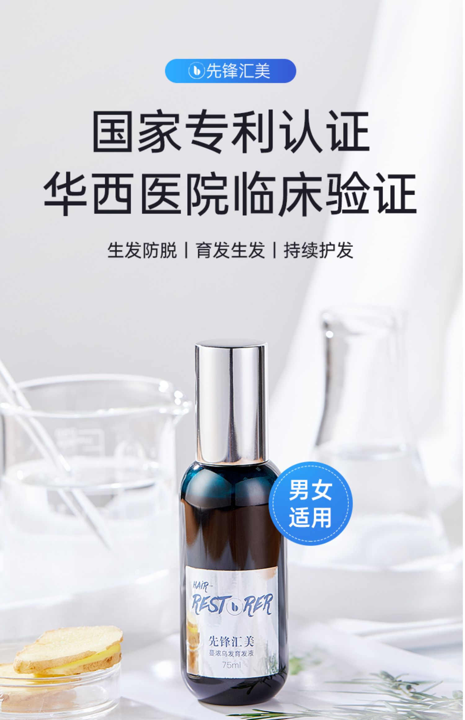【先锋汇美】华西医院联合研发,临床试验实测有效,无明显副作用,使用便捷,只需一喷,有效防止脱发,轻松帮你育发再生,让你告别脱发烦恼!【赠运费险】