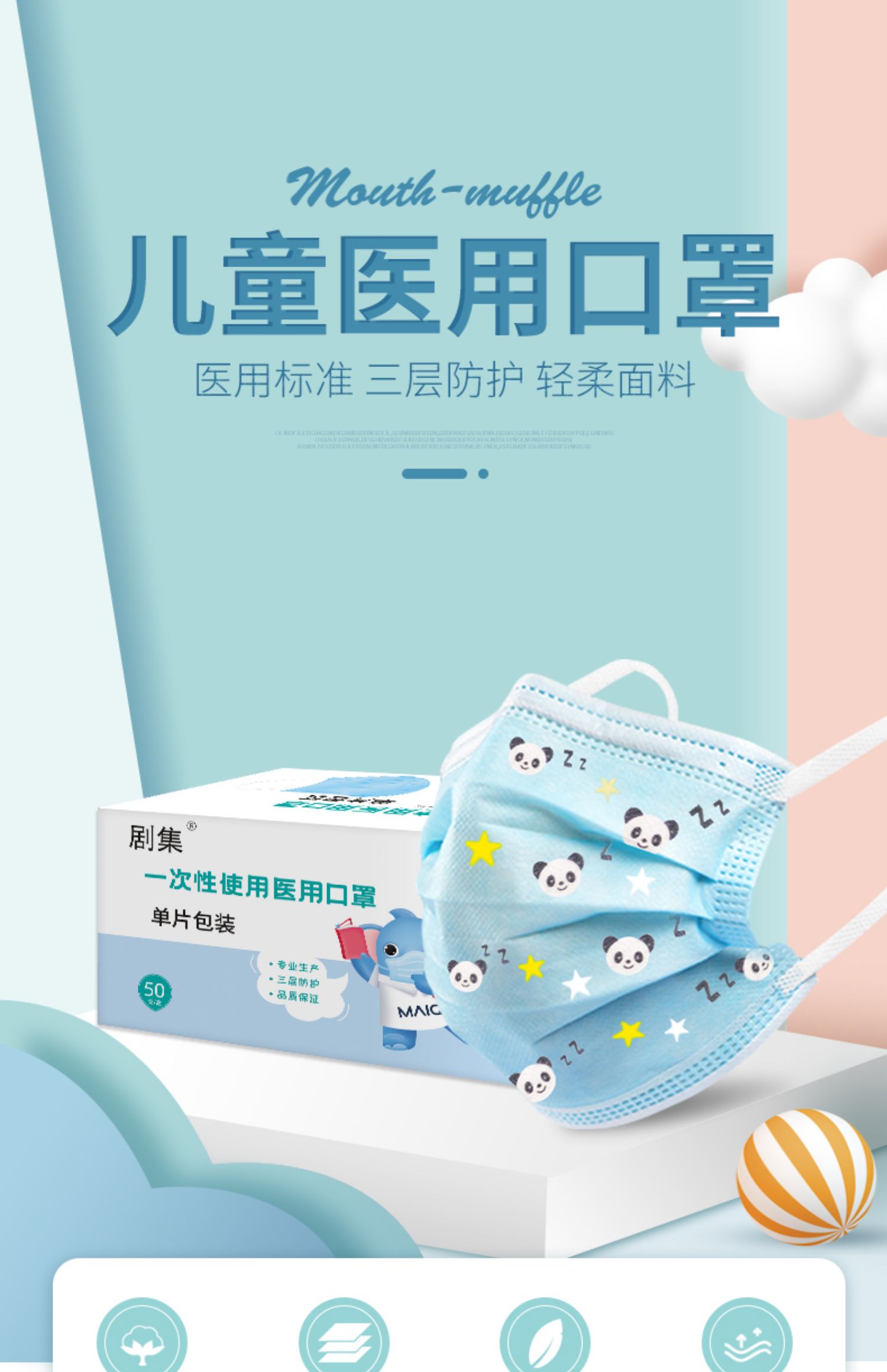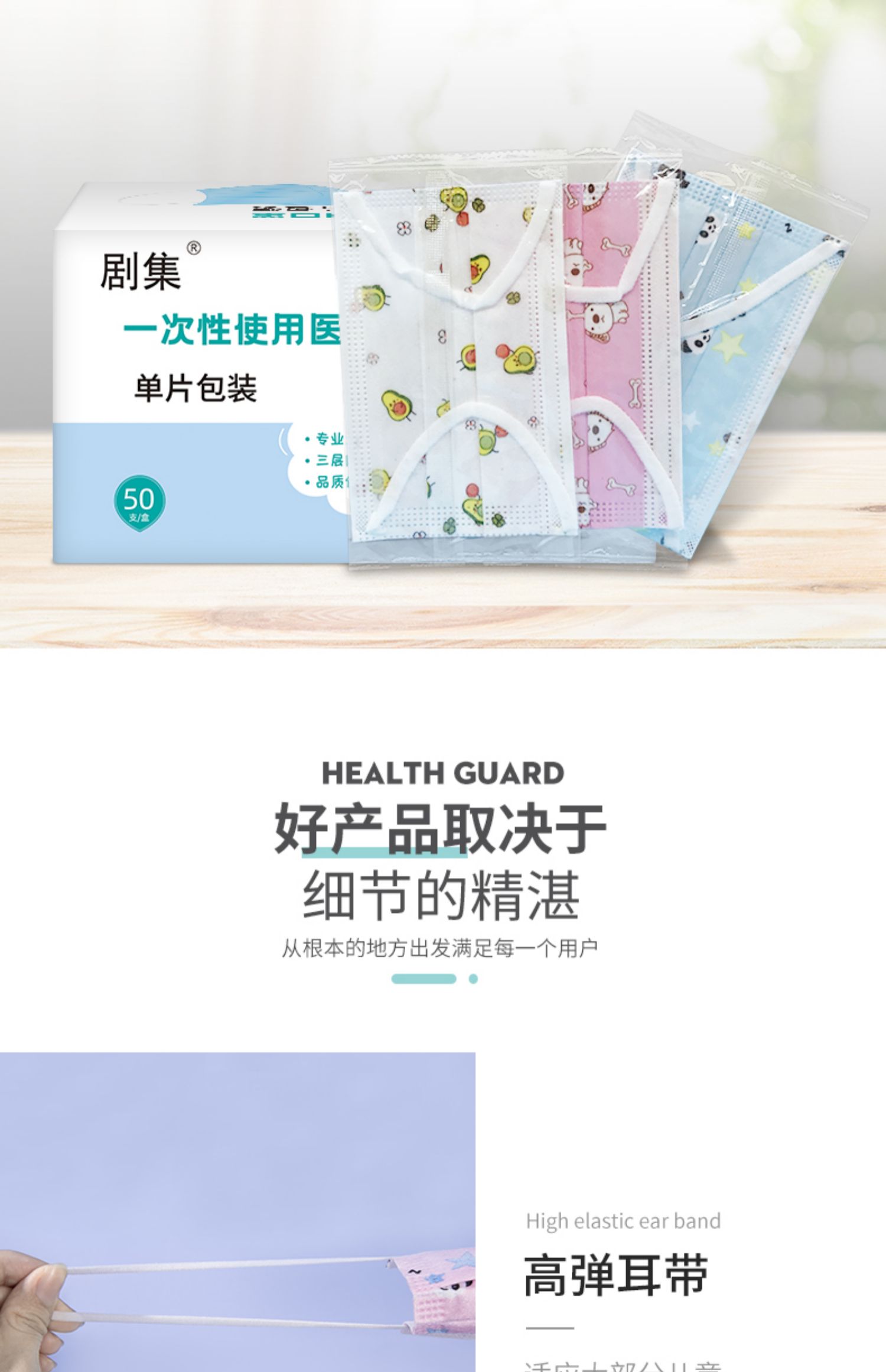 【超值50只独立包装】医用灭菌级印花口罩,药监认证械字号,宽带设计不勒耳,SSS轻柔面料防过敏,三层高效防护过滤,儿童专用,个性超奈斯~加厚保暖透气更适合冬天~