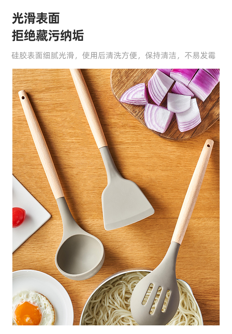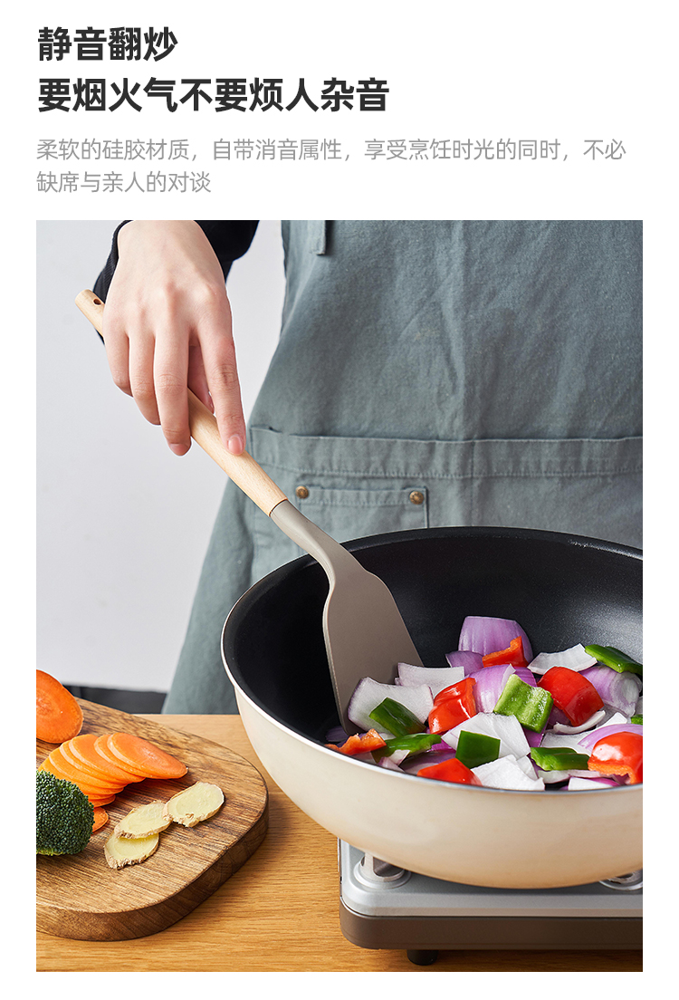 家里不粘锅的好搭档~淘宝心选硅胶铲!采用食品接触级硅胶,可耐受230度高温,翻炒不变形!榉木铲柄设计,隔热又美观!