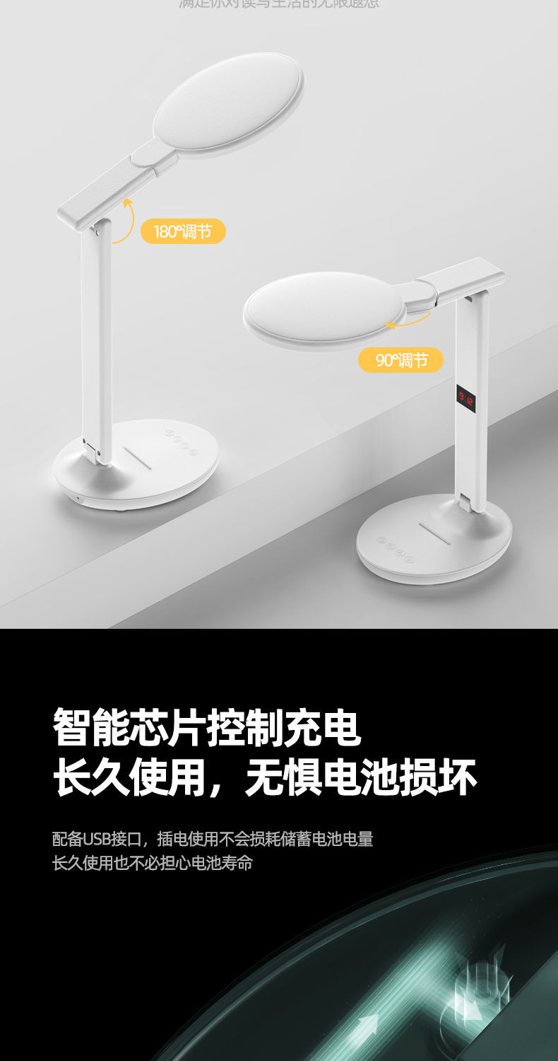 充电护眼台灯,学生宿舍书桌卧室床头阅读皆可用,真实自然光,白天一样护眼,把清晨的缕光搬回家,满足各种场景需求,来为孩子准备一手好灯吧