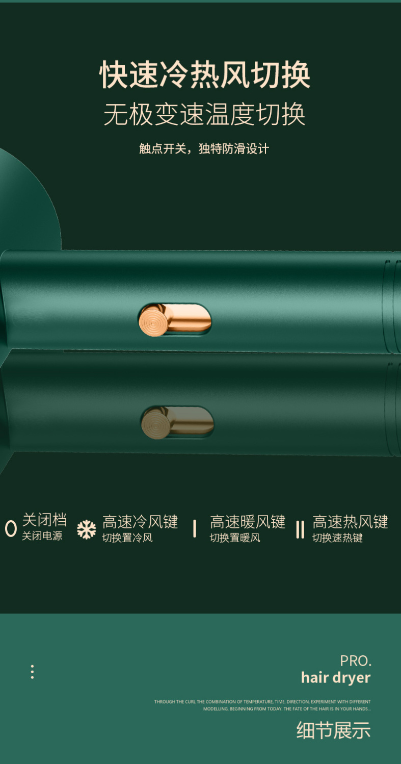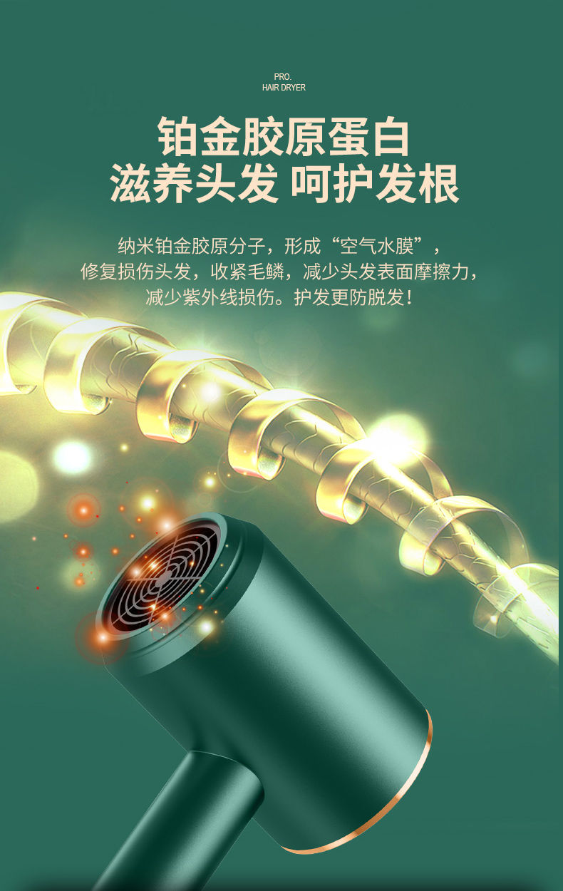 颜值高,体积小,性价比超高!大功率,恒温出风负离子,快速干发!滋养秀发,让秀发柔顺有光泽,成为人群中的焦点!(赠运费险)