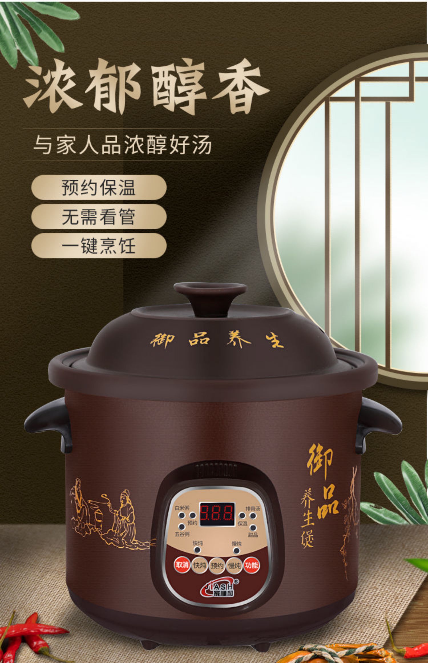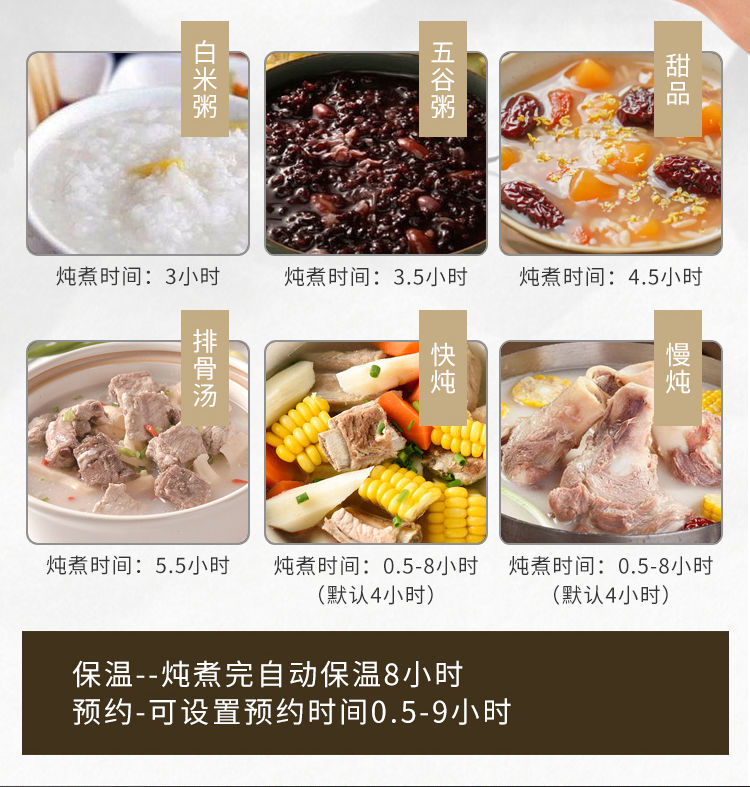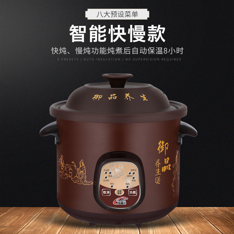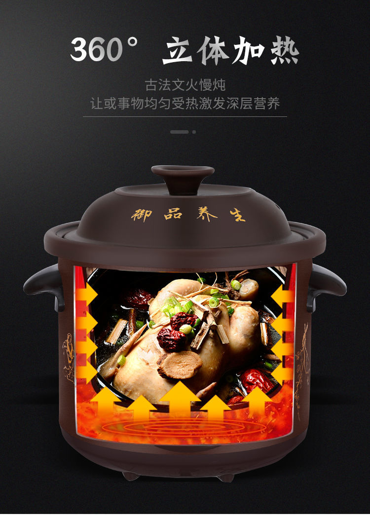 全自动煲汤熬粥陶瓷电炖锅5L大容量,红陶内胆,自动保温,10大功能,24小时预约定时,出门前放入原材料,回家就有热腾腾的美汤喝咯!(赠运费险)