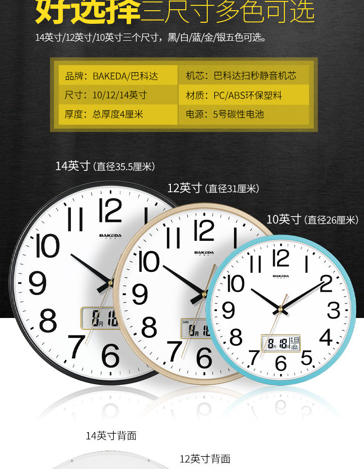 2022新款聪明钟,德国品牌机芯,静音准时,环保材质,带日历挂钟,适用各种场景。(赠运费险)