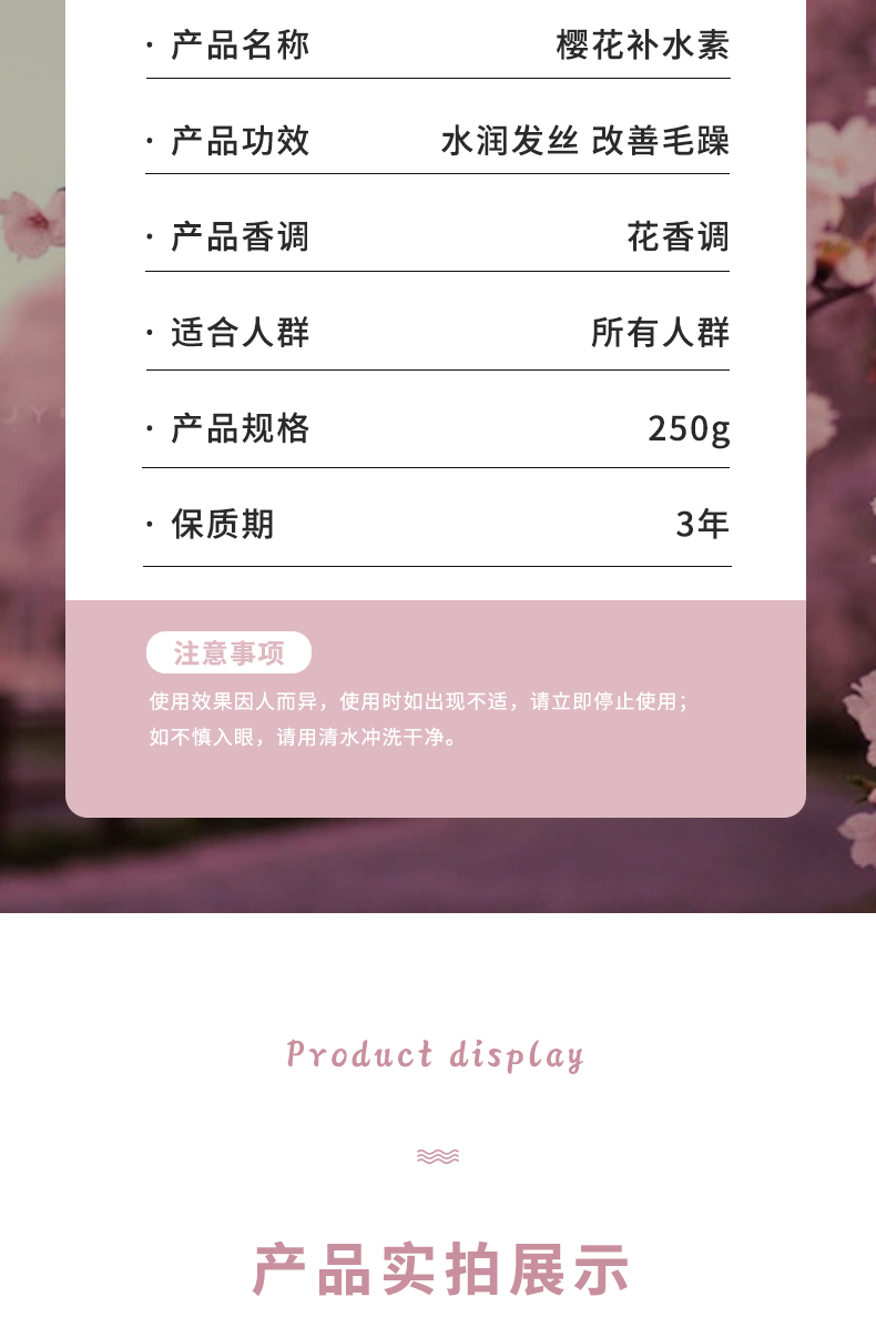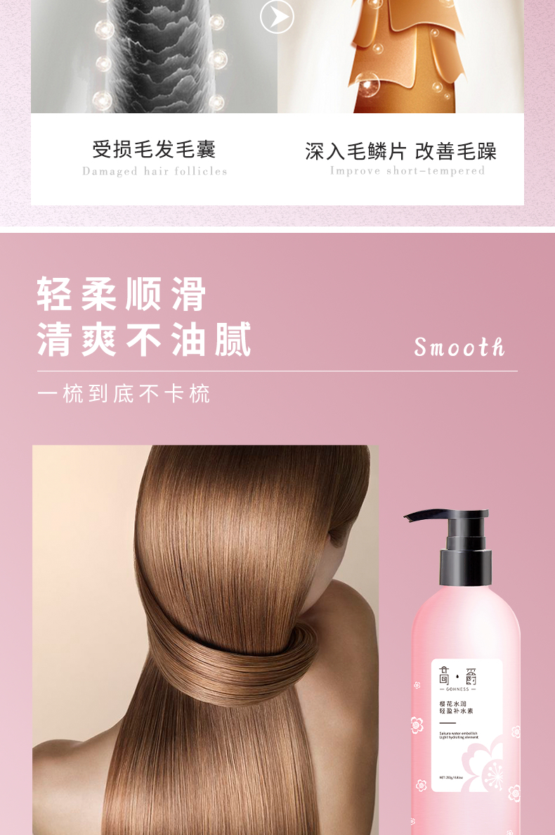 高爵樱花滋润盈养补水素柔顺改善护发素250g